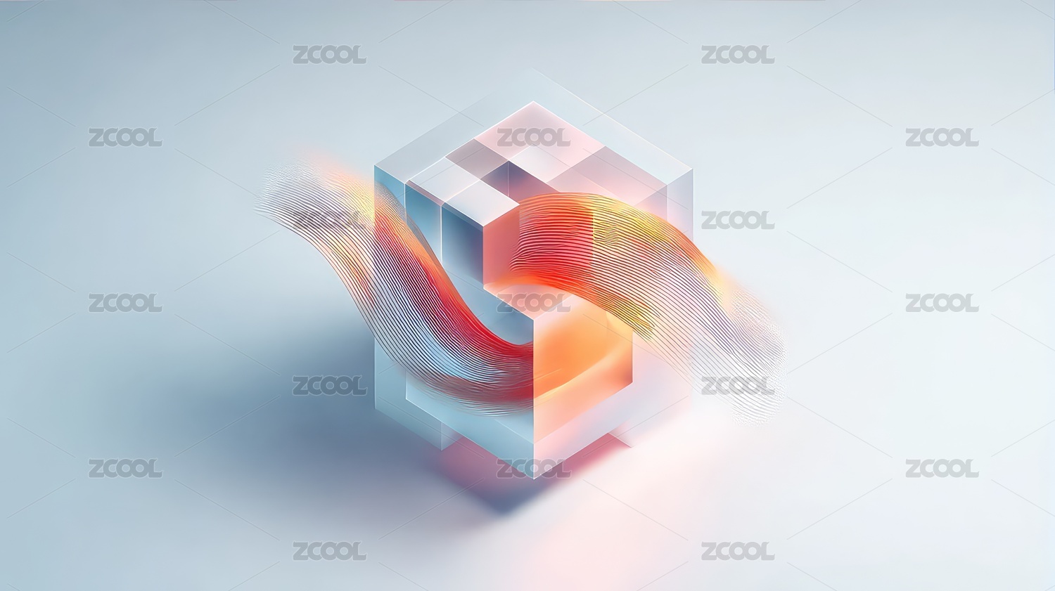 立方体中流动着彩色线条抽象