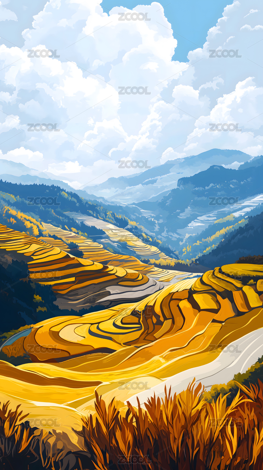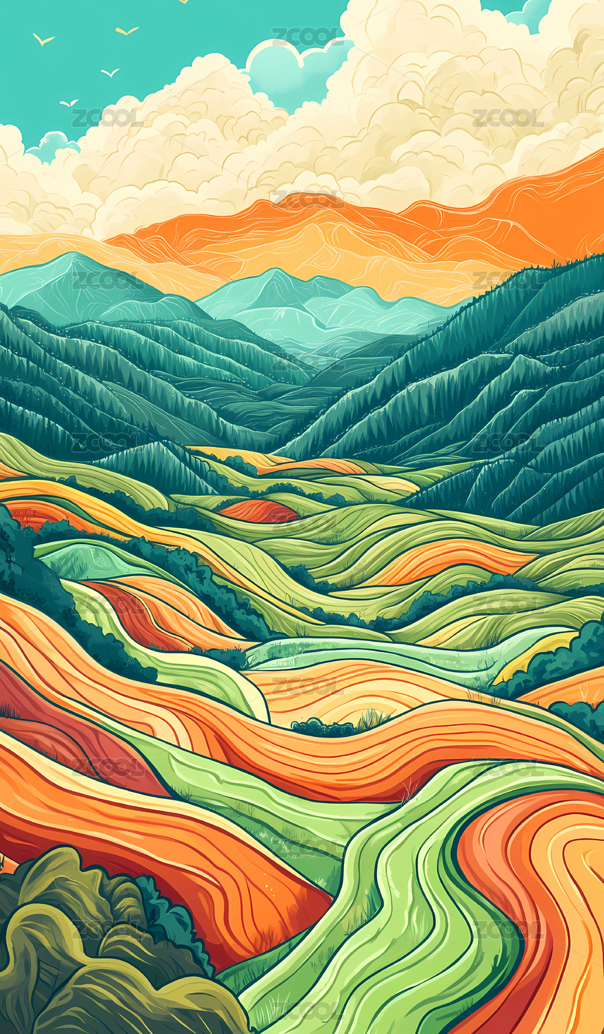 AI数字艺术,户外,自然,地形,风景,高山,梯田,农业,田园风光,绿色