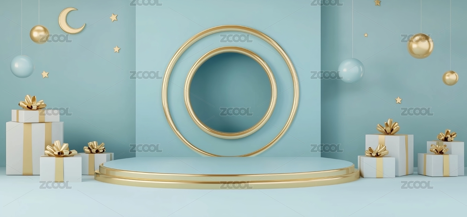 金色圆环与礼盒的节日展示场景