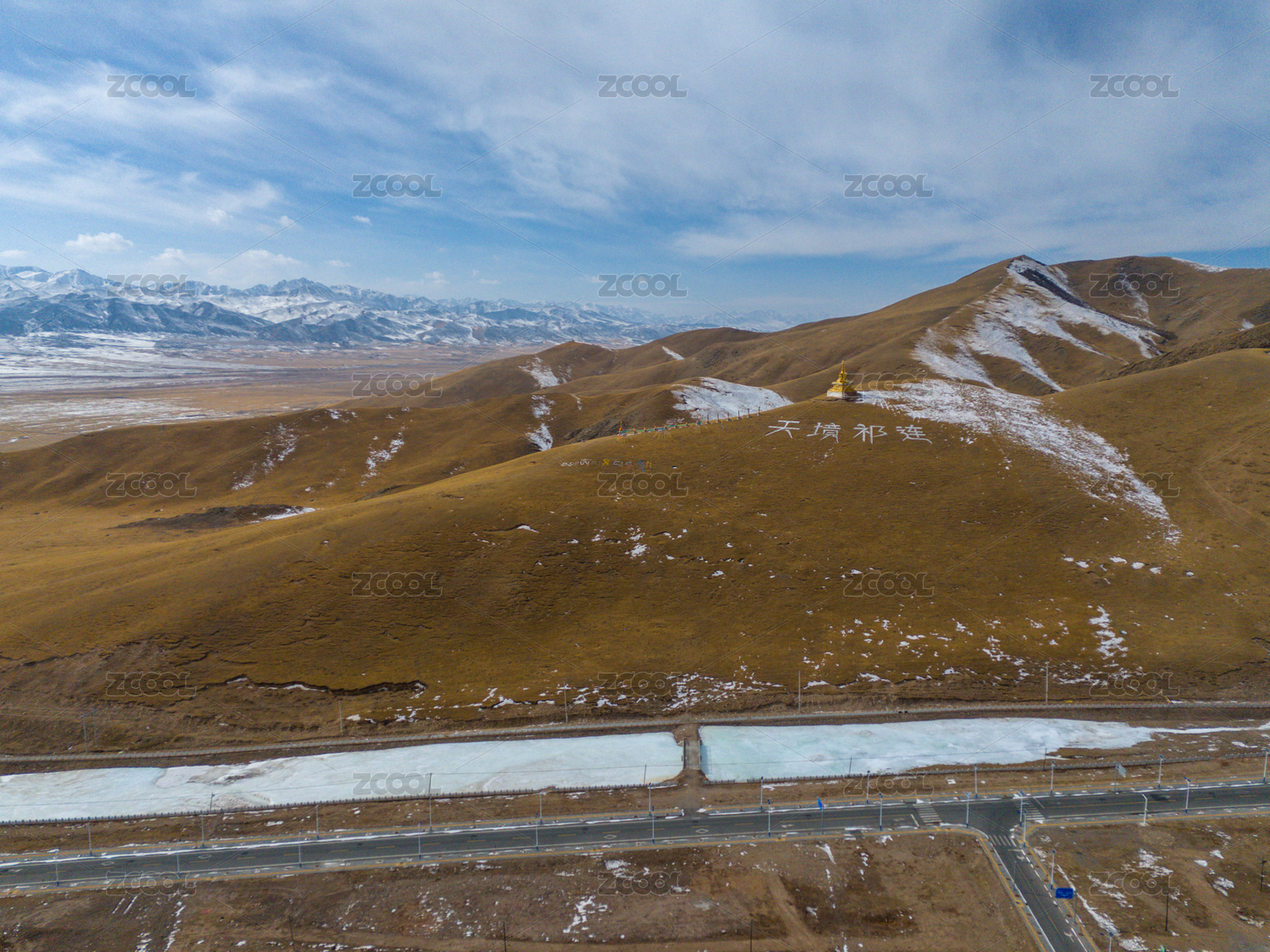 中国四川甘孜八郎生都村远眺贡嘎雅拉航拍图
