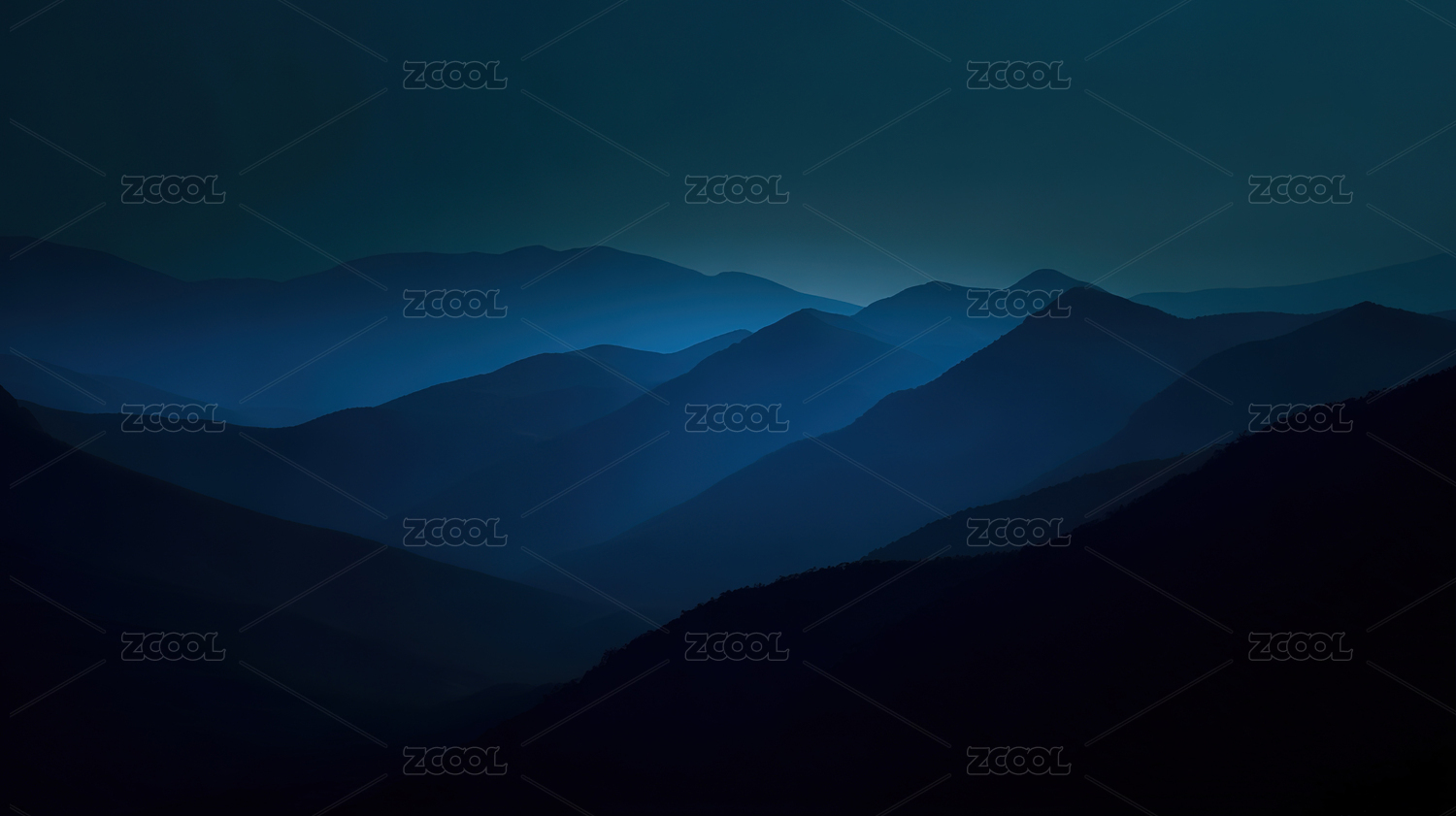 层叠山脉的蓝色渐变