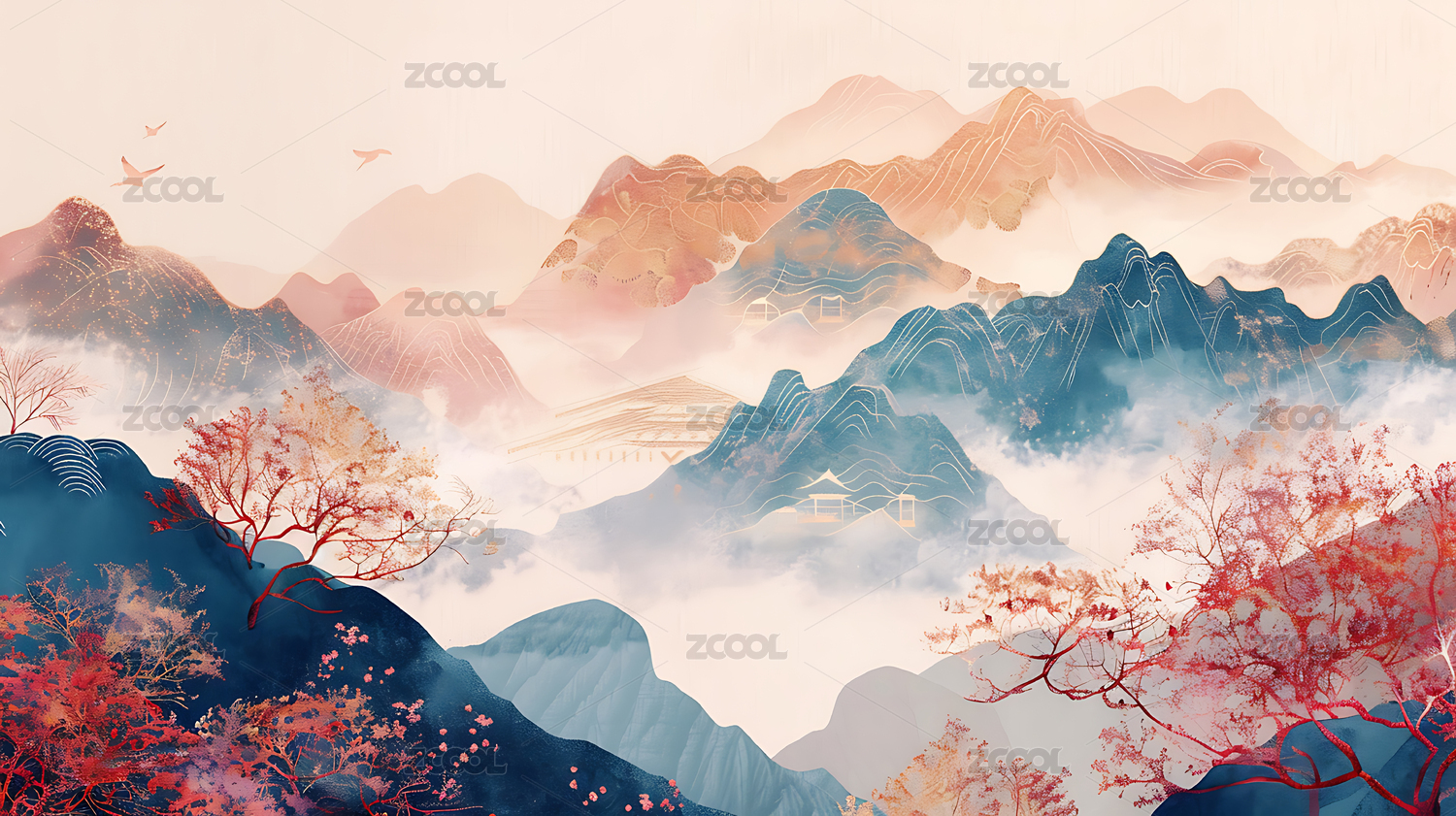 AI数字艺术,背景,插画,自然,无人,高山,艺术,中国文化,传统,波浪