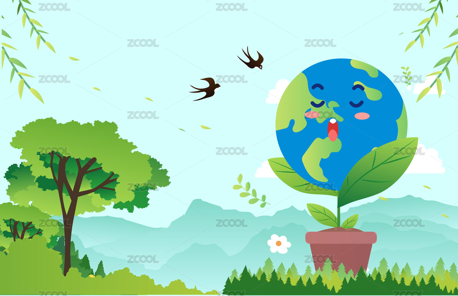 环保,地球,自然,叶子,植物,燕子,水滴,风车,插画