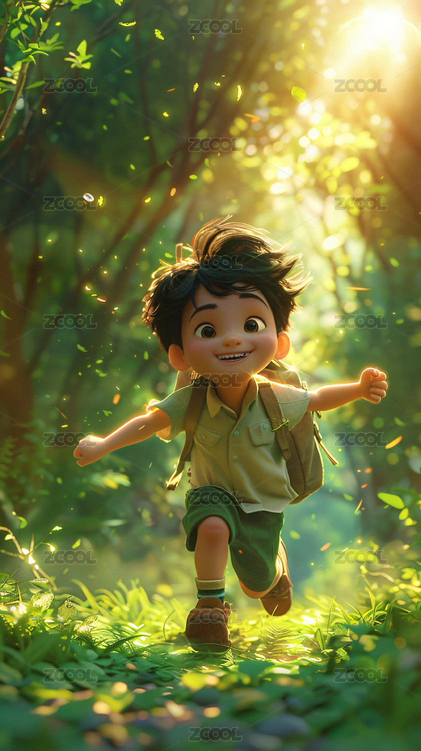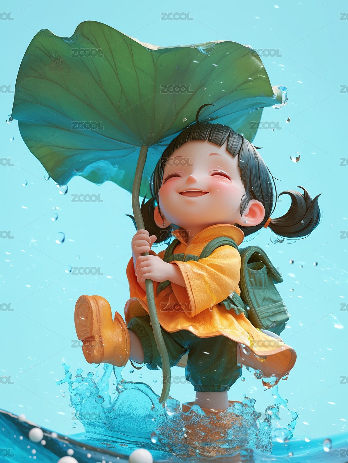 户外,天空,女孩,卡通,植物,春天,叶子,绿色,自然,清新
