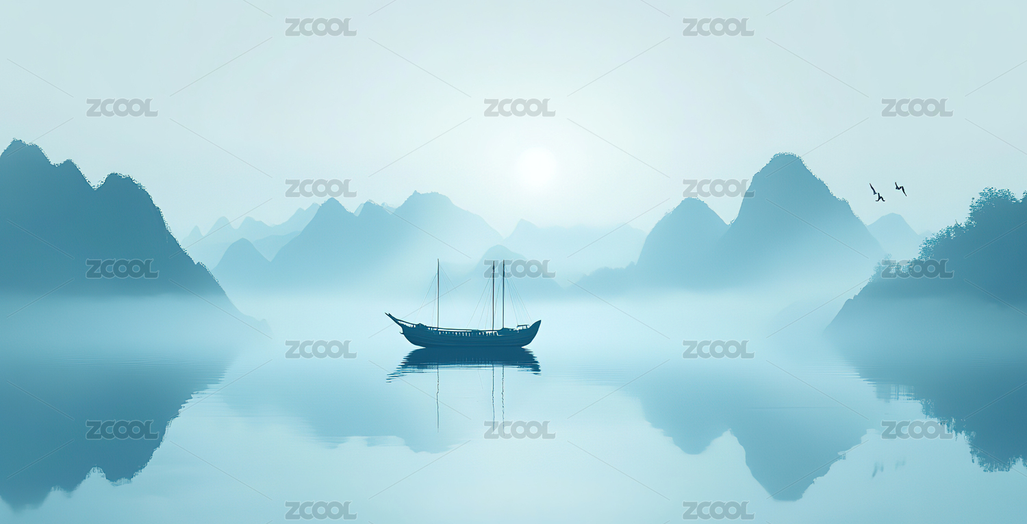 风景,自然,湖泊,山脉,渔夫,小船,捕鱼,宁静,祥和,清晨