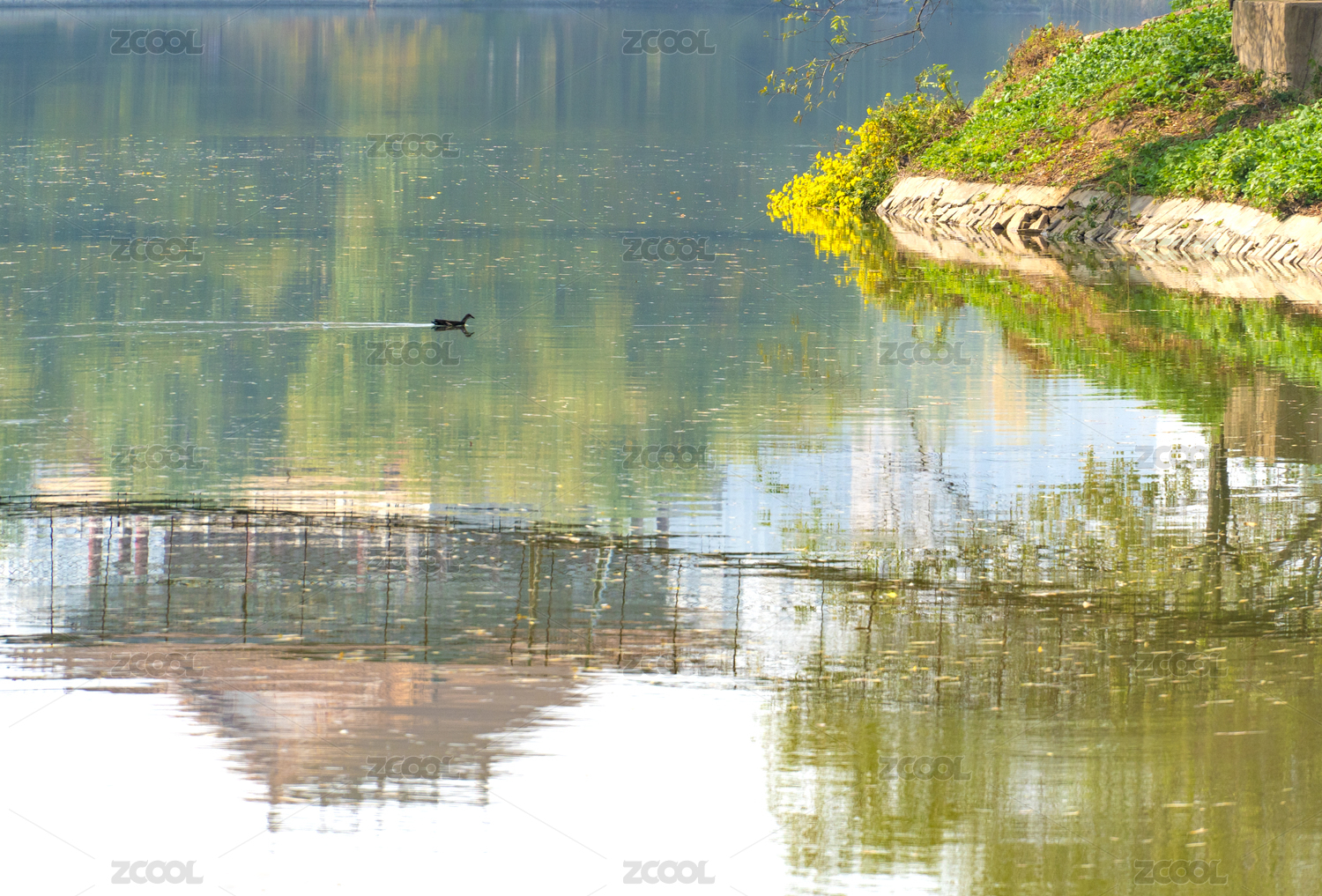 成都雅安龙苍沟翠绿的水以及鸳鸯戏水的倒影