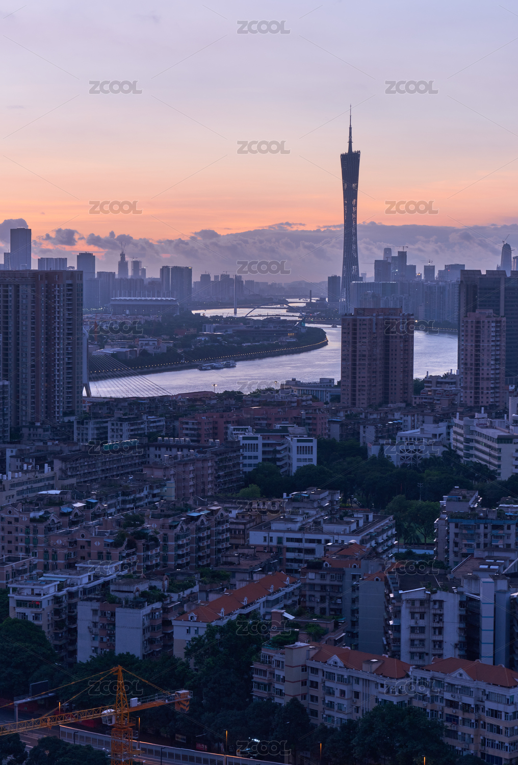 中国广州城市夕阳晚霞风光