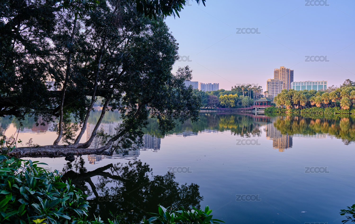 中国广州麓湖公园湖泊风景