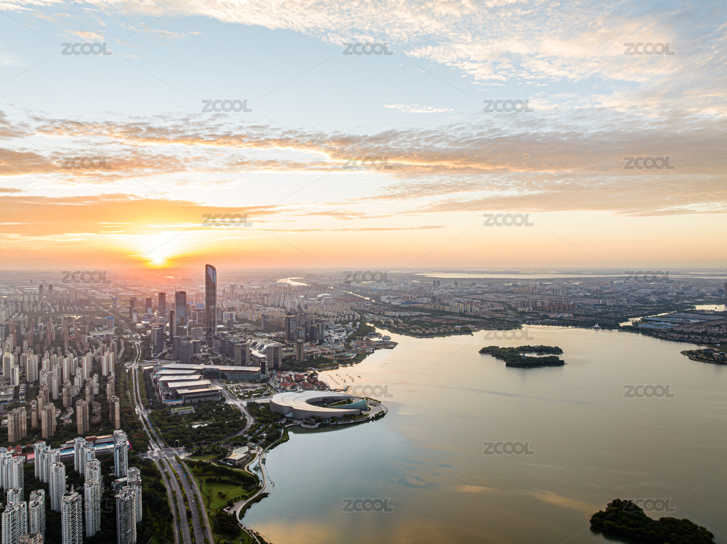 中国江苏苏州金鸡湖日出朝霞