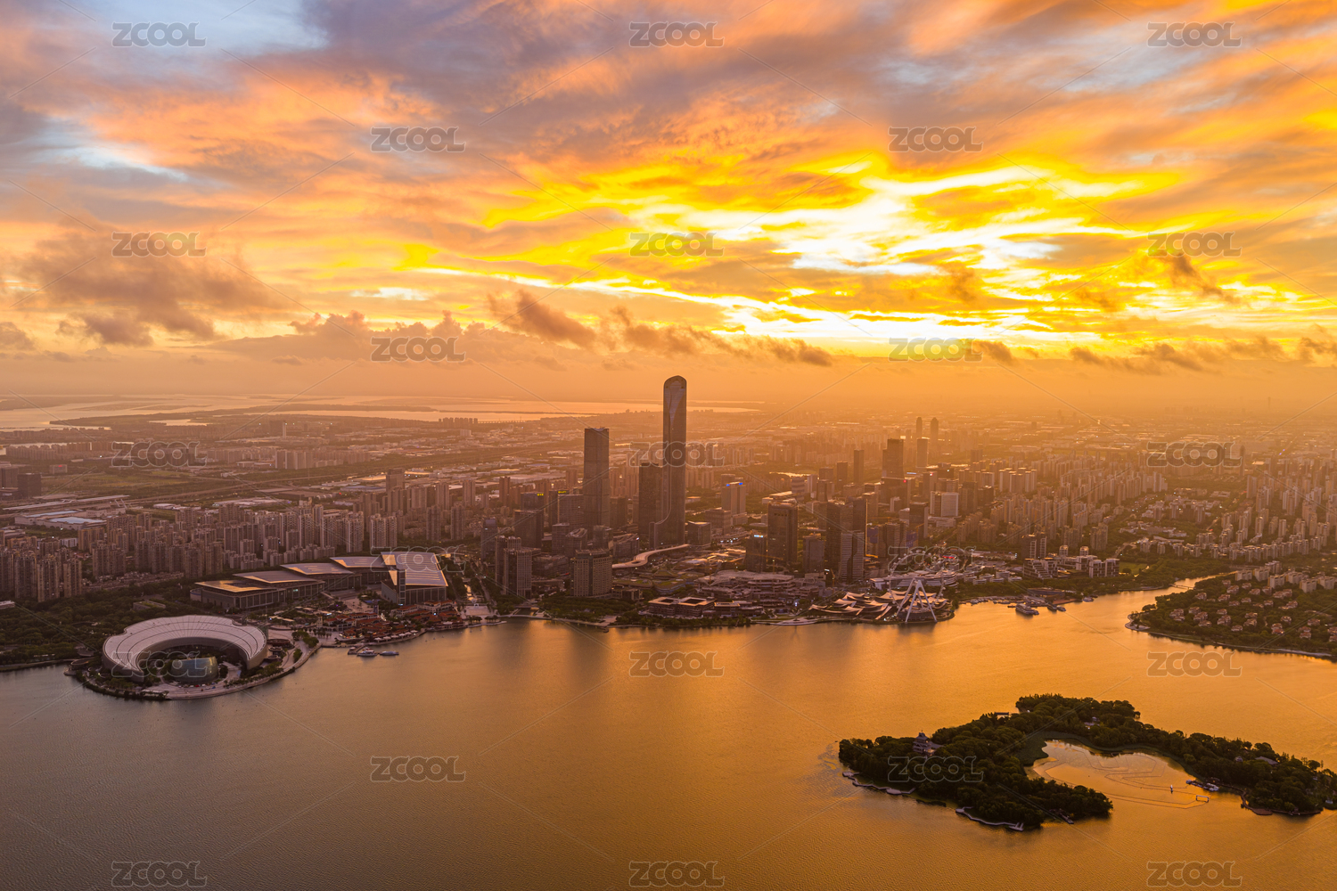 中国江苏苏州工业园区金鸡湖航拍