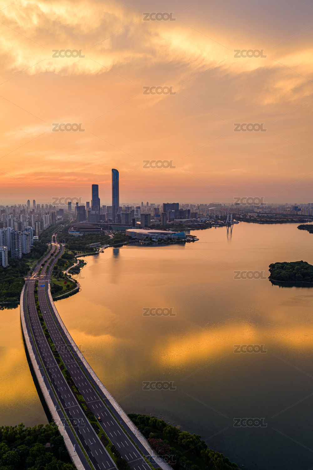 中国江苏苏州工业园区金鸡湖景区晚霞