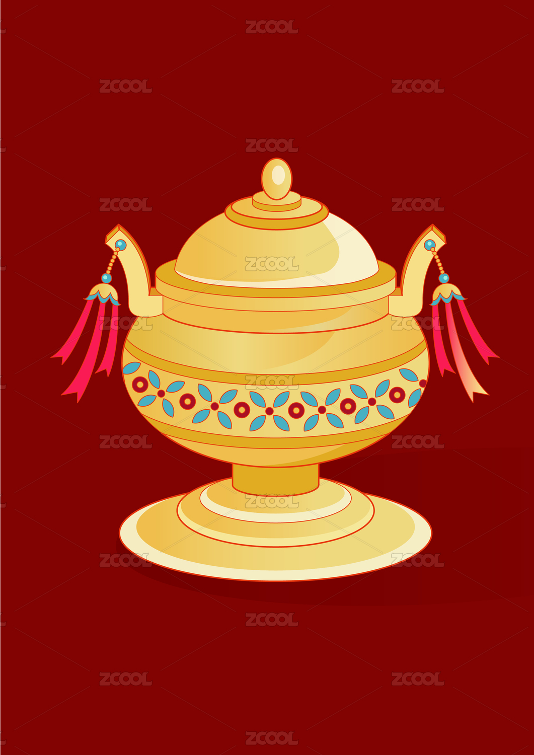 古风汉代带盘博山炉铜炉手绘矢量线稿插画
