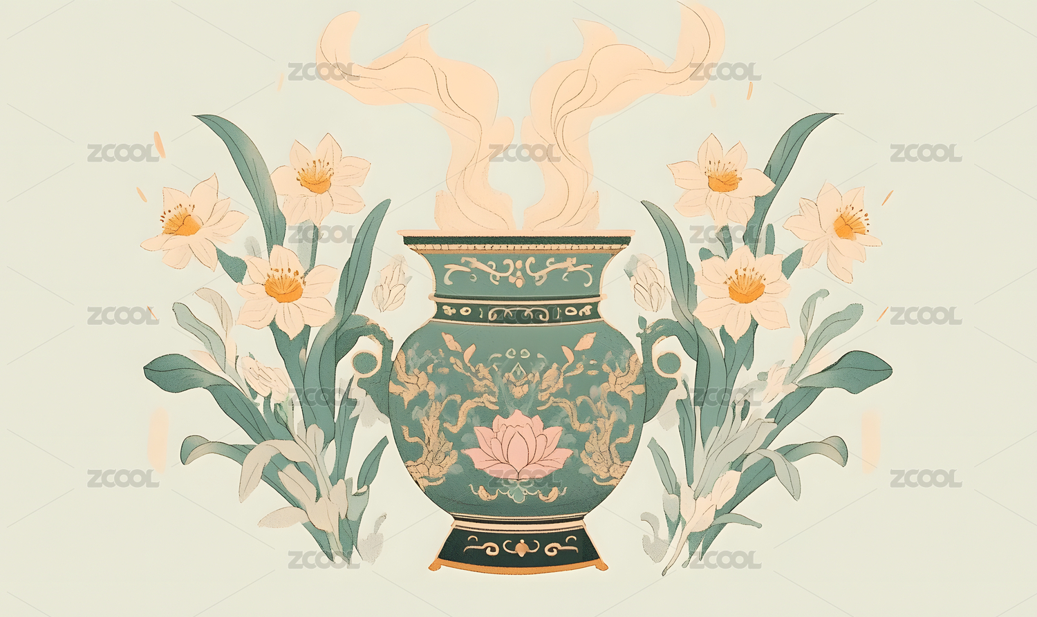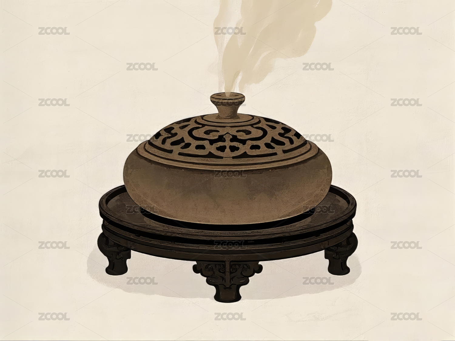 HEYYTGF2020,国风,香案,焚香,禅意,微观场景,古风,插图,配图,香炉