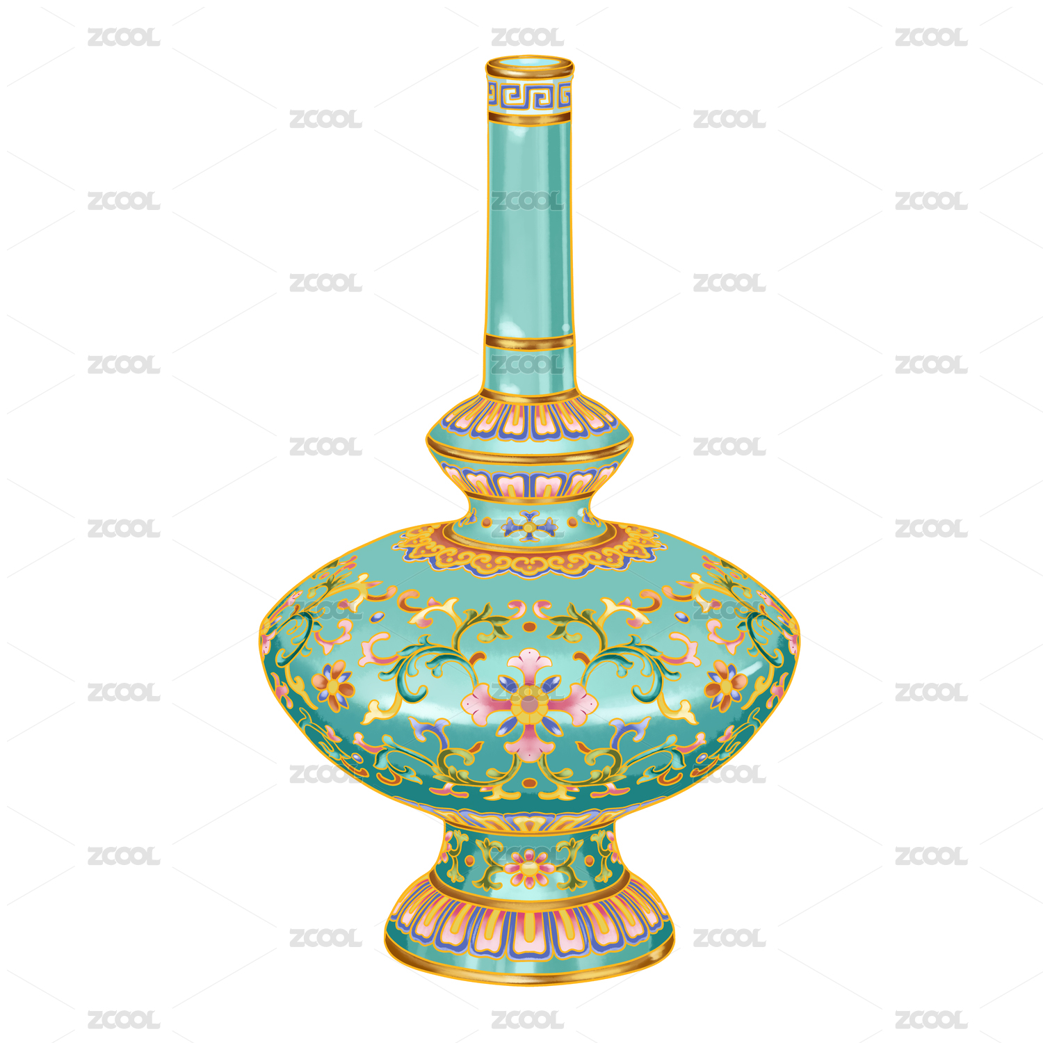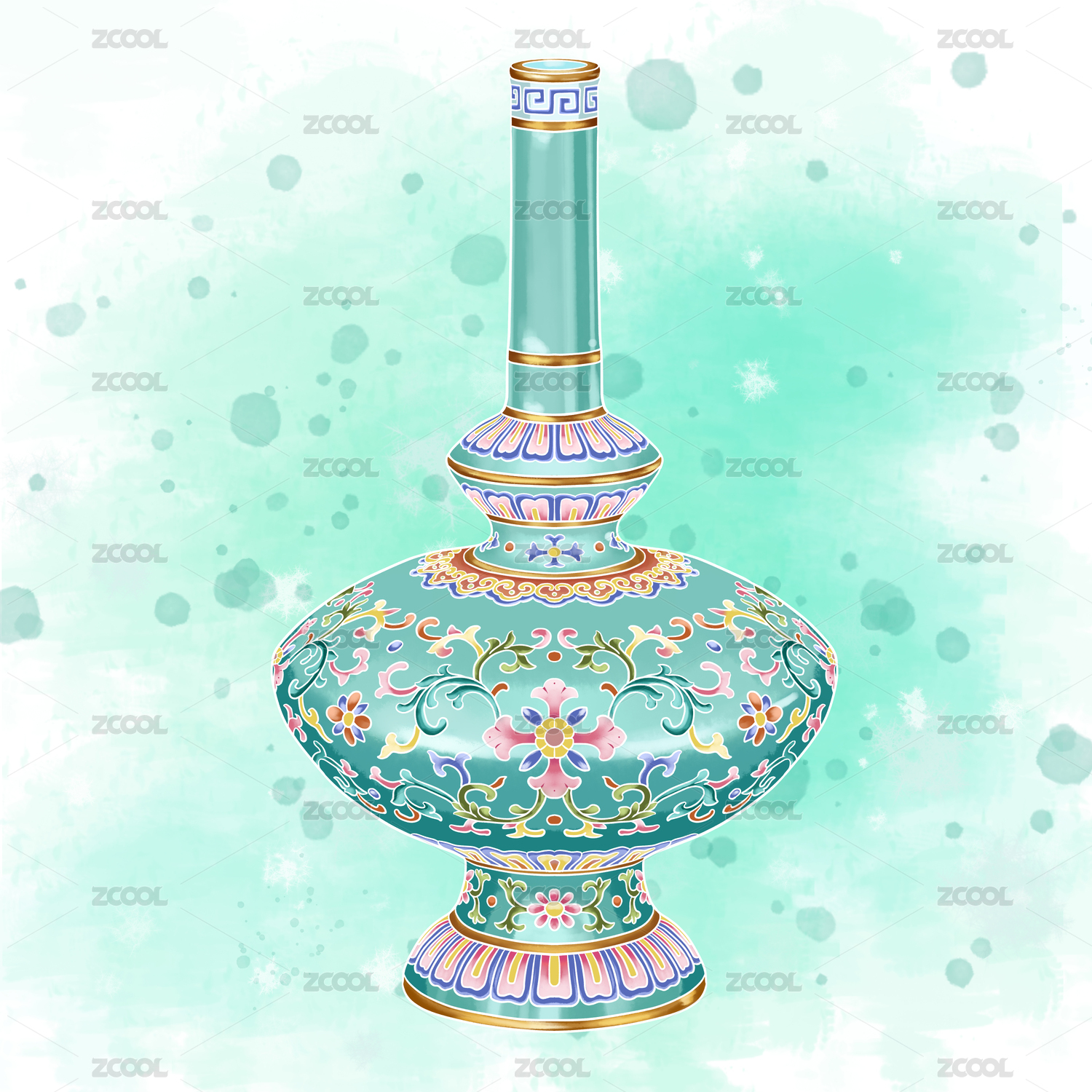 乾隆款绿地粉彩缠枝莲纹奔巴瓶手绘插画背景
