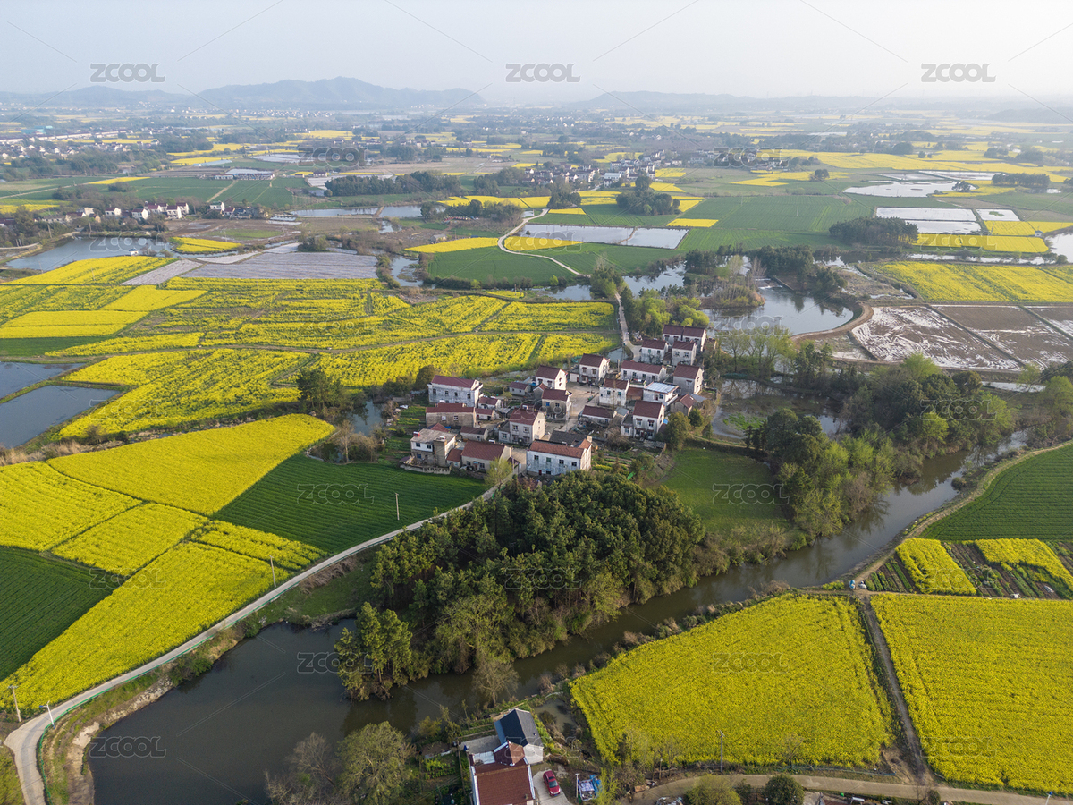 航拍中国安徽省宣城市郎溪县美丽乡村油菜花