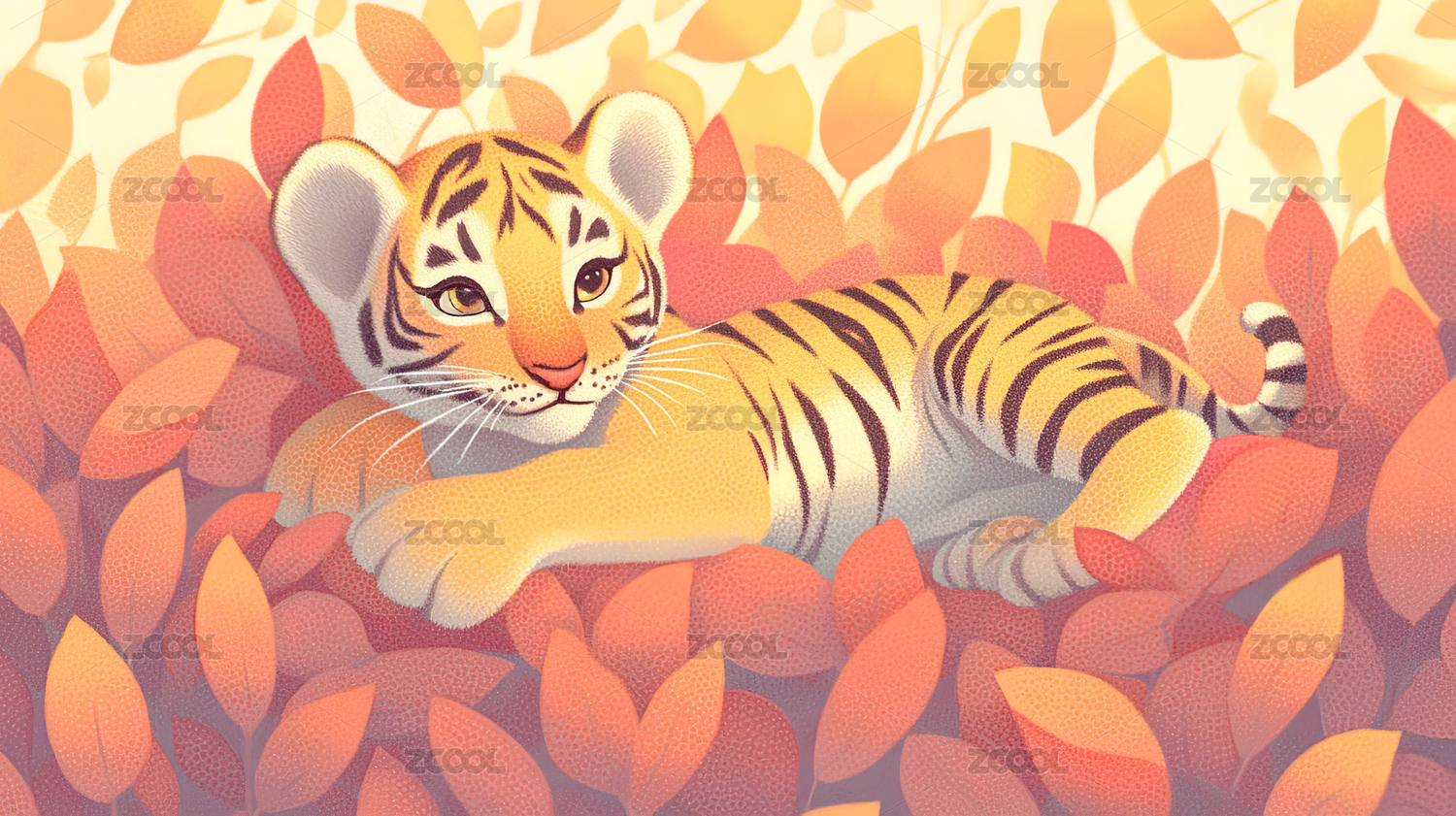 老虎可爱唯美野生动物3D卡通插画壁纸