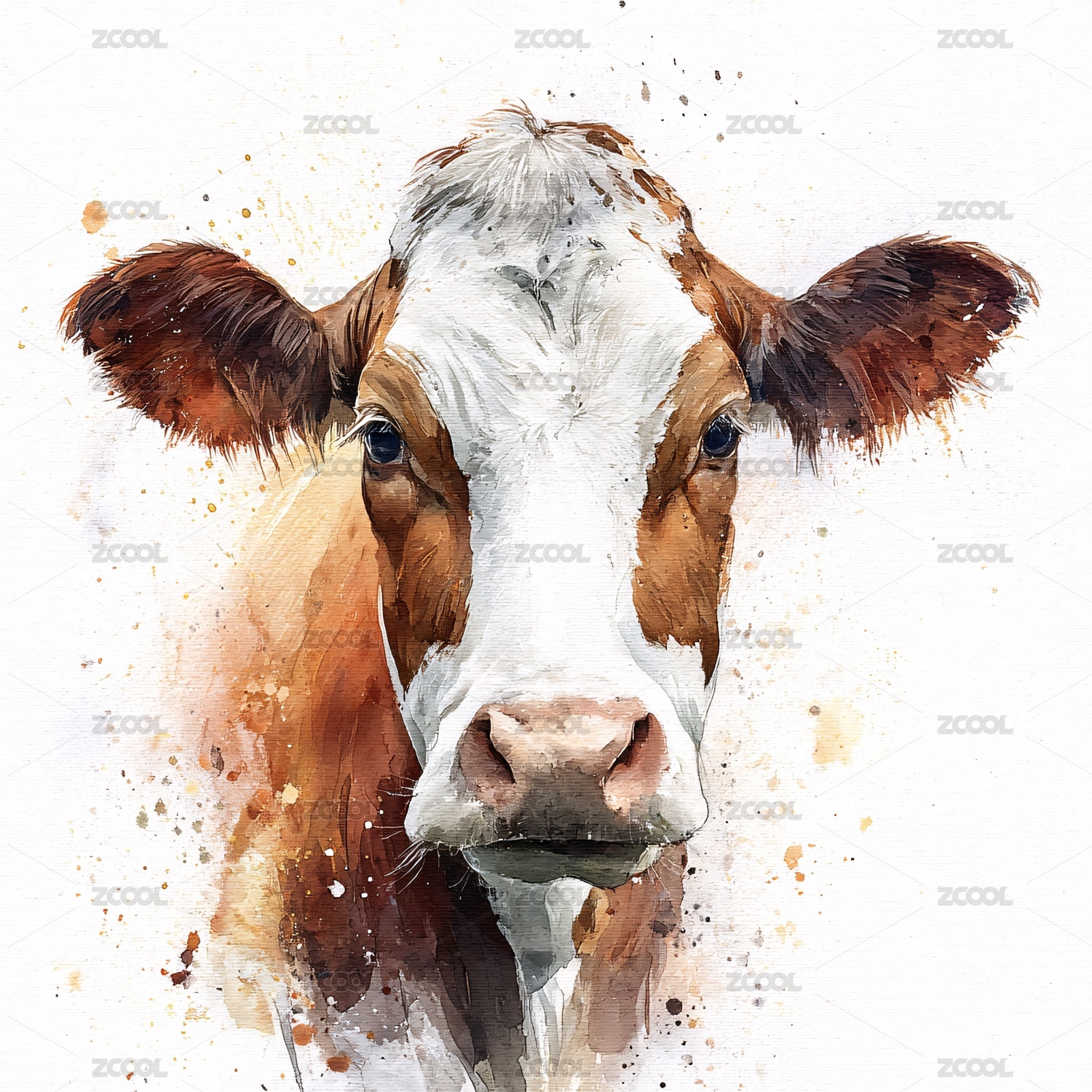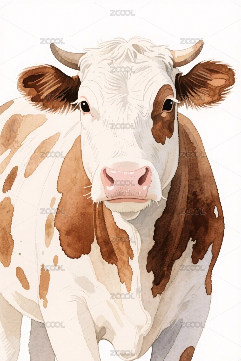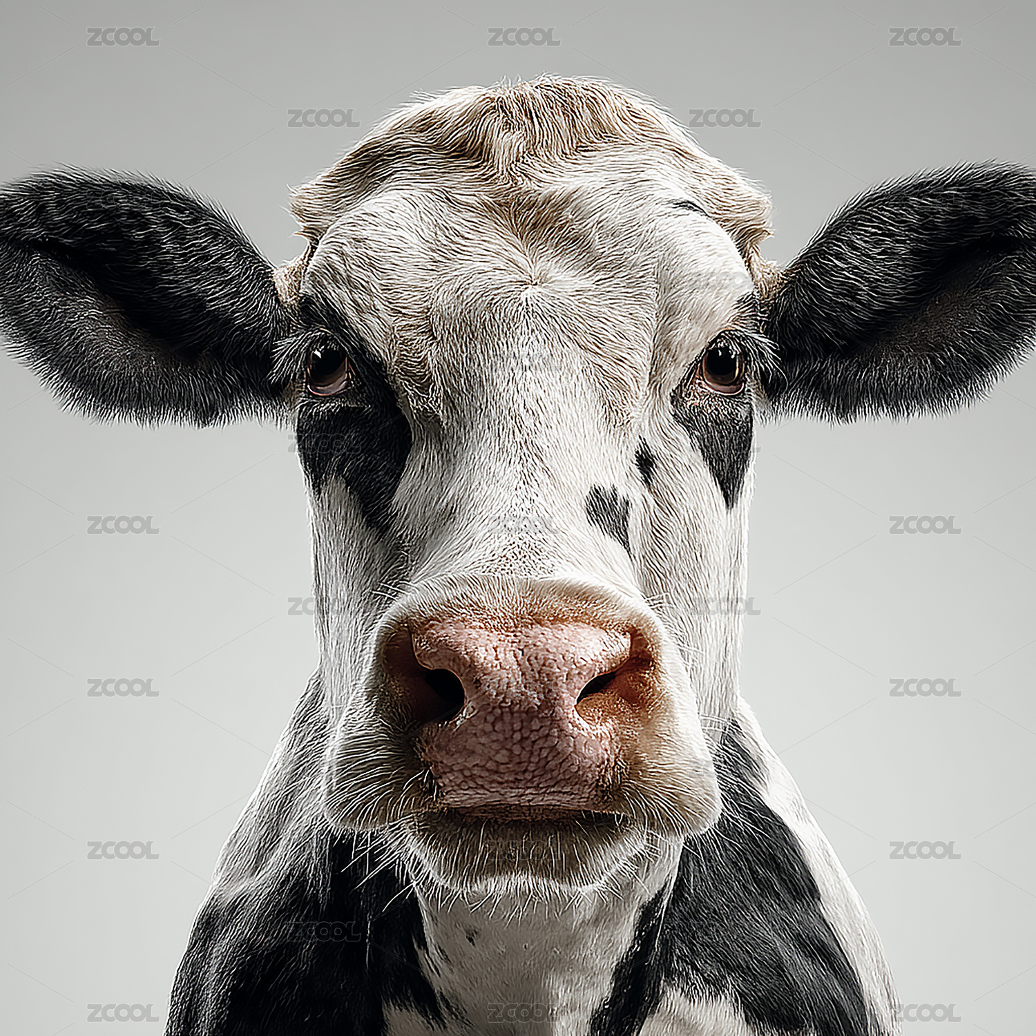 艺术,绘画,质感,特写,奶牛,动物,可爱,毛发,黑白,牛
