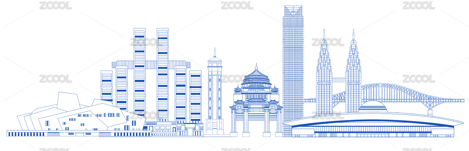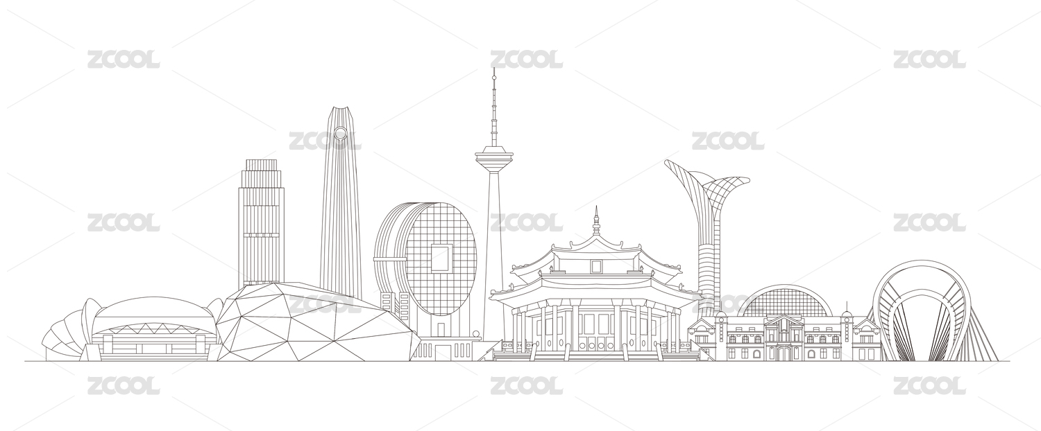 描边,线条,城市,建筑,插画,著名景点,建筑群,轮廓,描边插画,标志