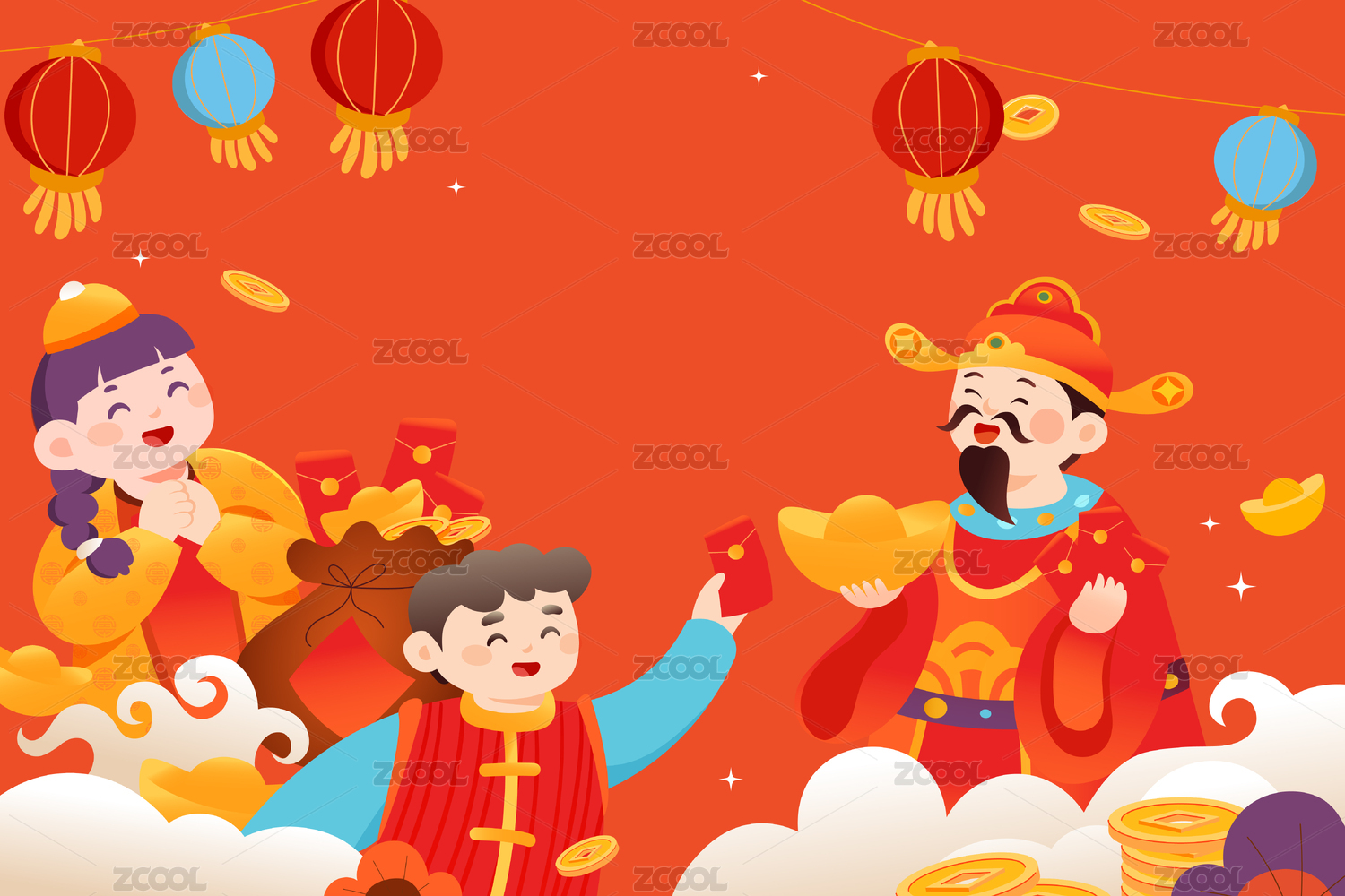 新春龙年过年人物传统喜庆矢量插画素材背景