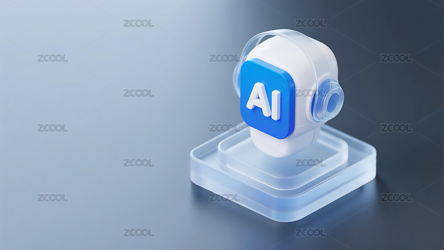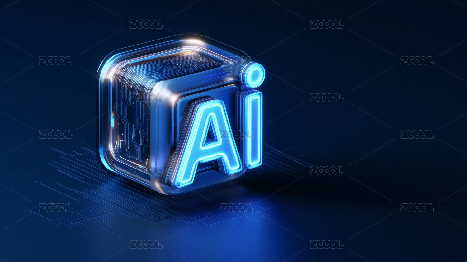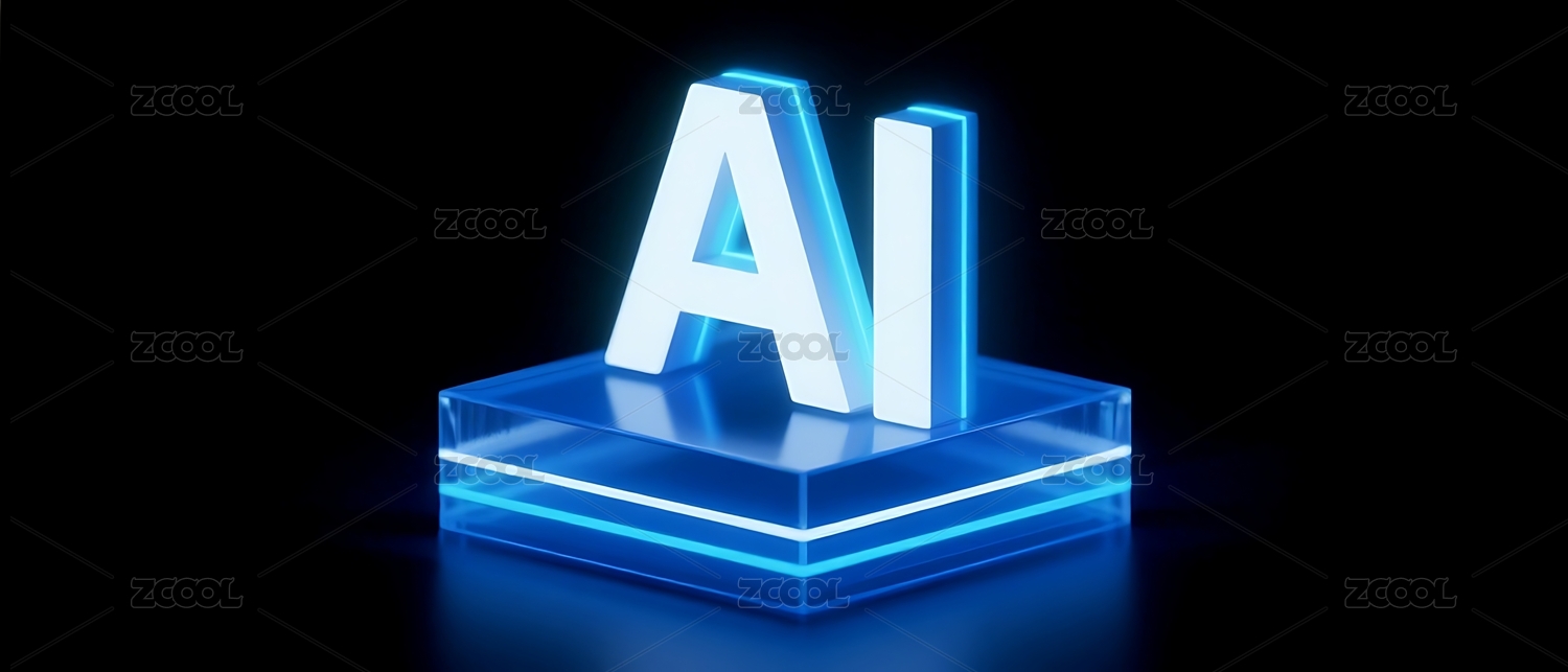 AI标志置于发光平台