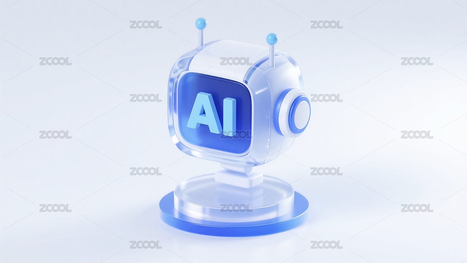 白色发光平台上的AI立体展示