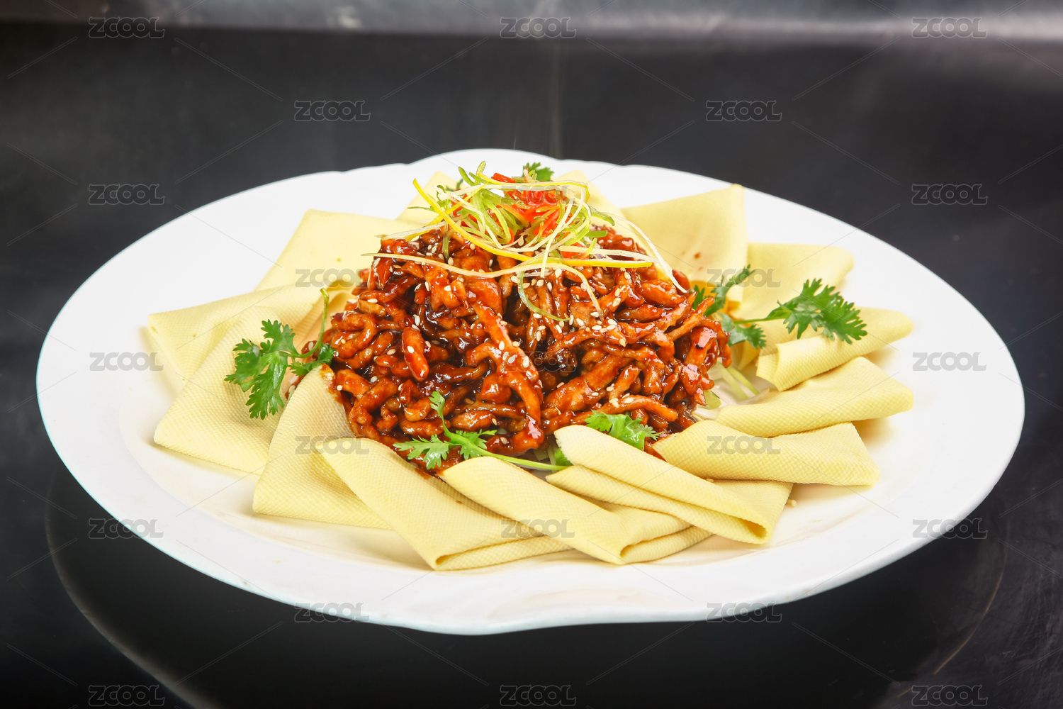 新派酱爆鸭丝,荷叶饼酱肉丝,肉丝,中餐,京酱鸭丝,酱爆鸭丝,京酱肉丝,荷叶饼酱爆鸭丝,炒菜,酱爆肉丝