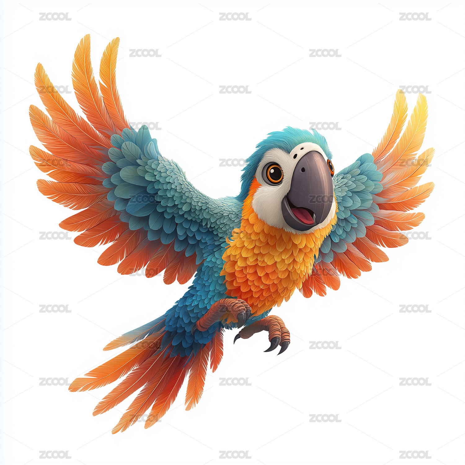 3D,卡通,动物,鹦鹉,鸟,飞,展翅,飞翔,蓝色,插画
