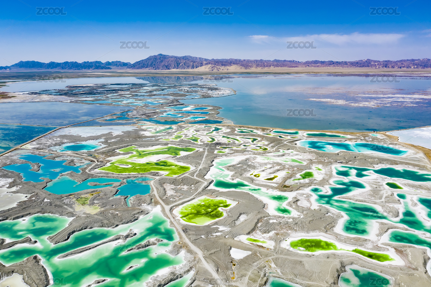 青海省柴达木盆地大柴旦翡翠湖航拍图片