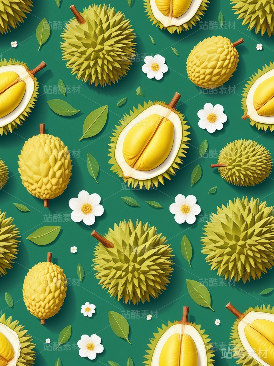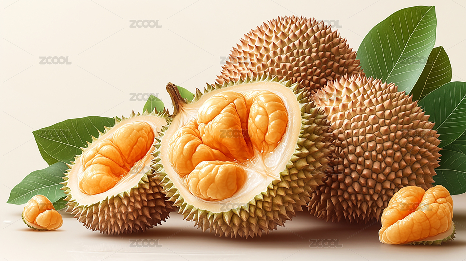 3D,健康,味道,夏季,带刺,成熟,插画,新鲜,榴莲,水果