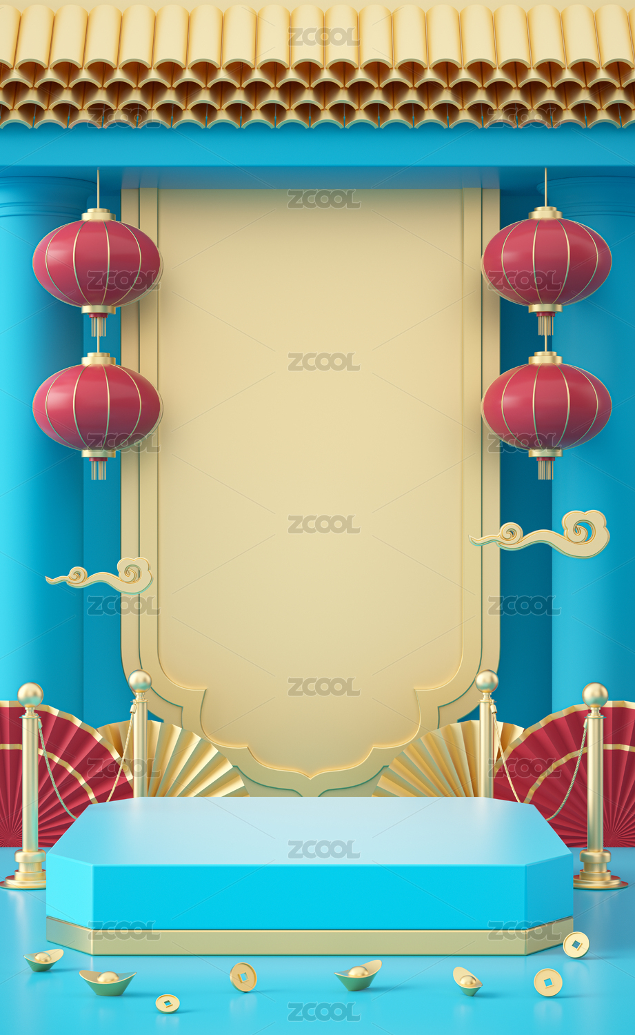 中国风电商促销产品展示台简约创意3D