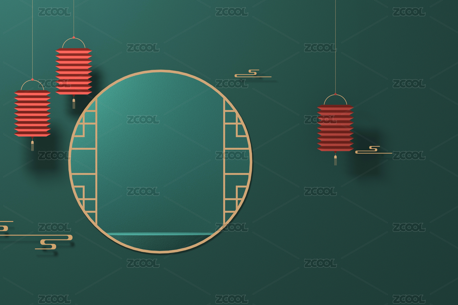 模板,国潮风,新中式,绿色,金色,中国文化,清新,三维图形,插画,节日