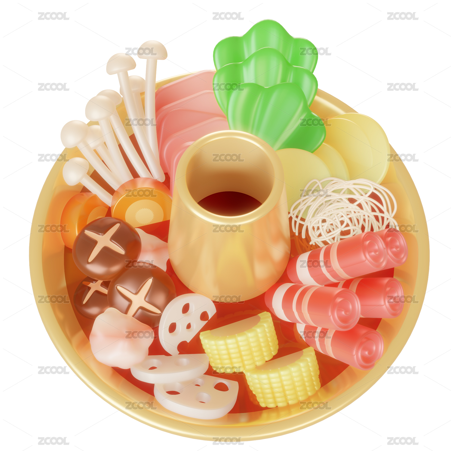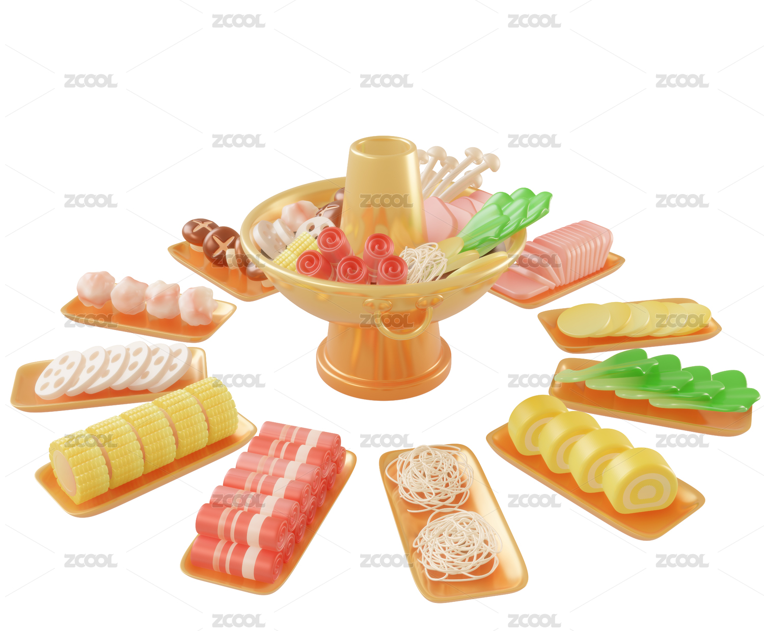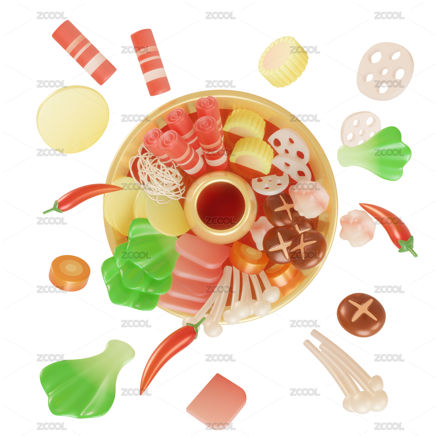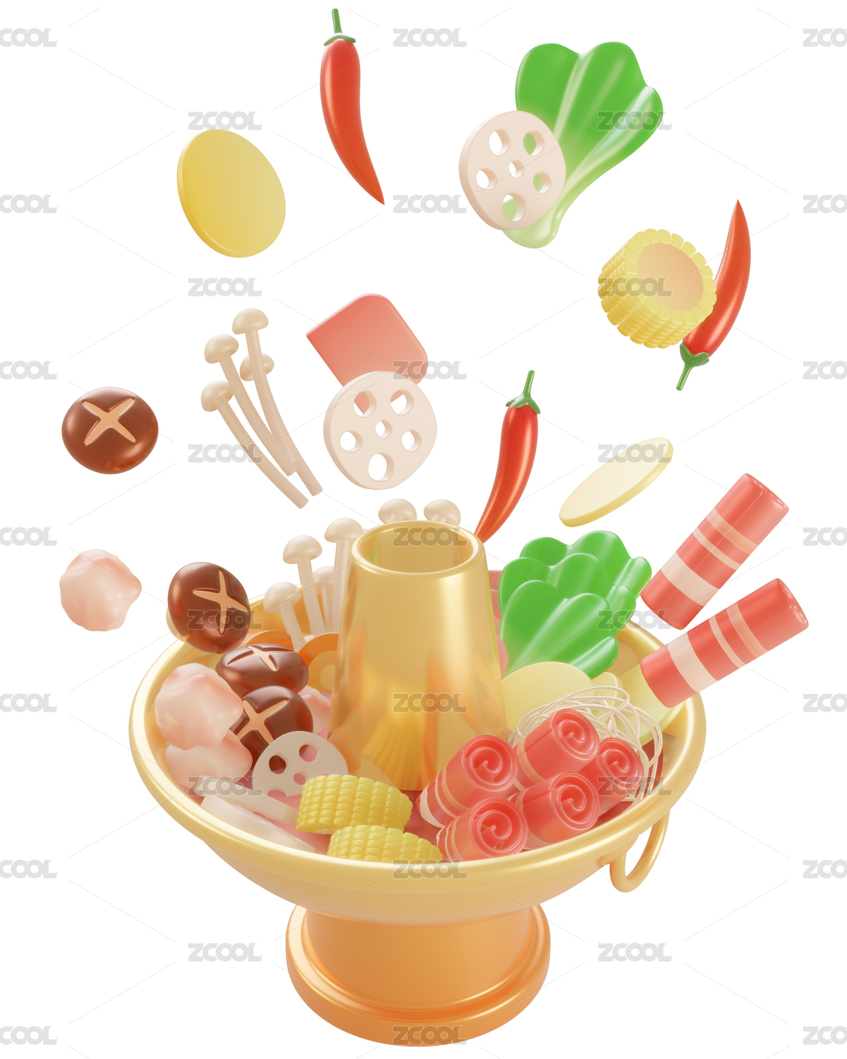 节日新年火锅团圆饭年夜饭3d插画元素
