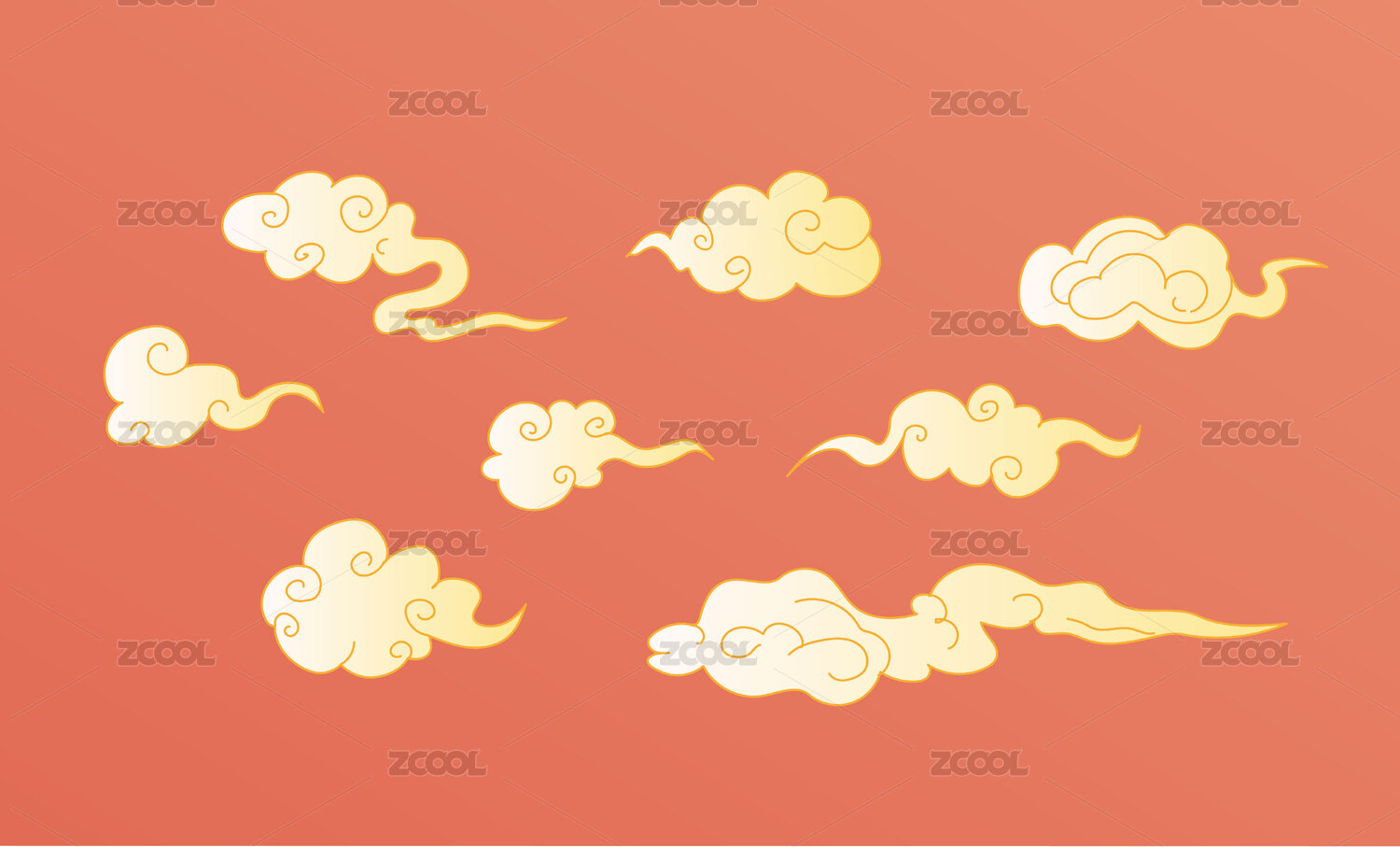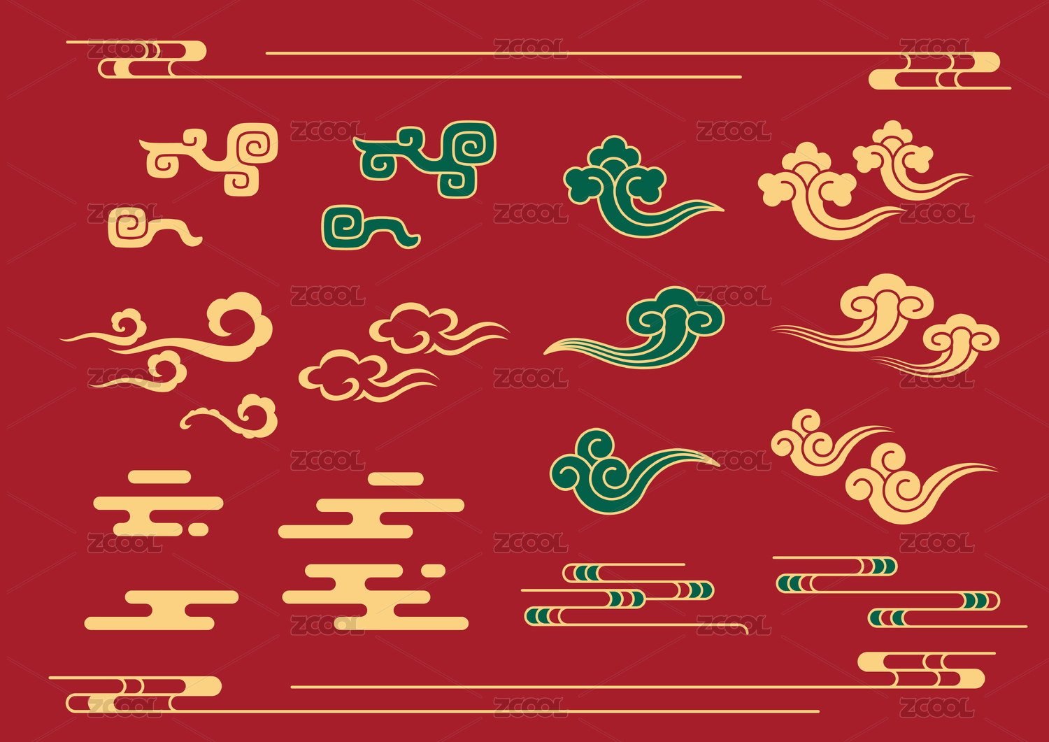 中国传统元素祥云纹理图案系列矢量线稿插画