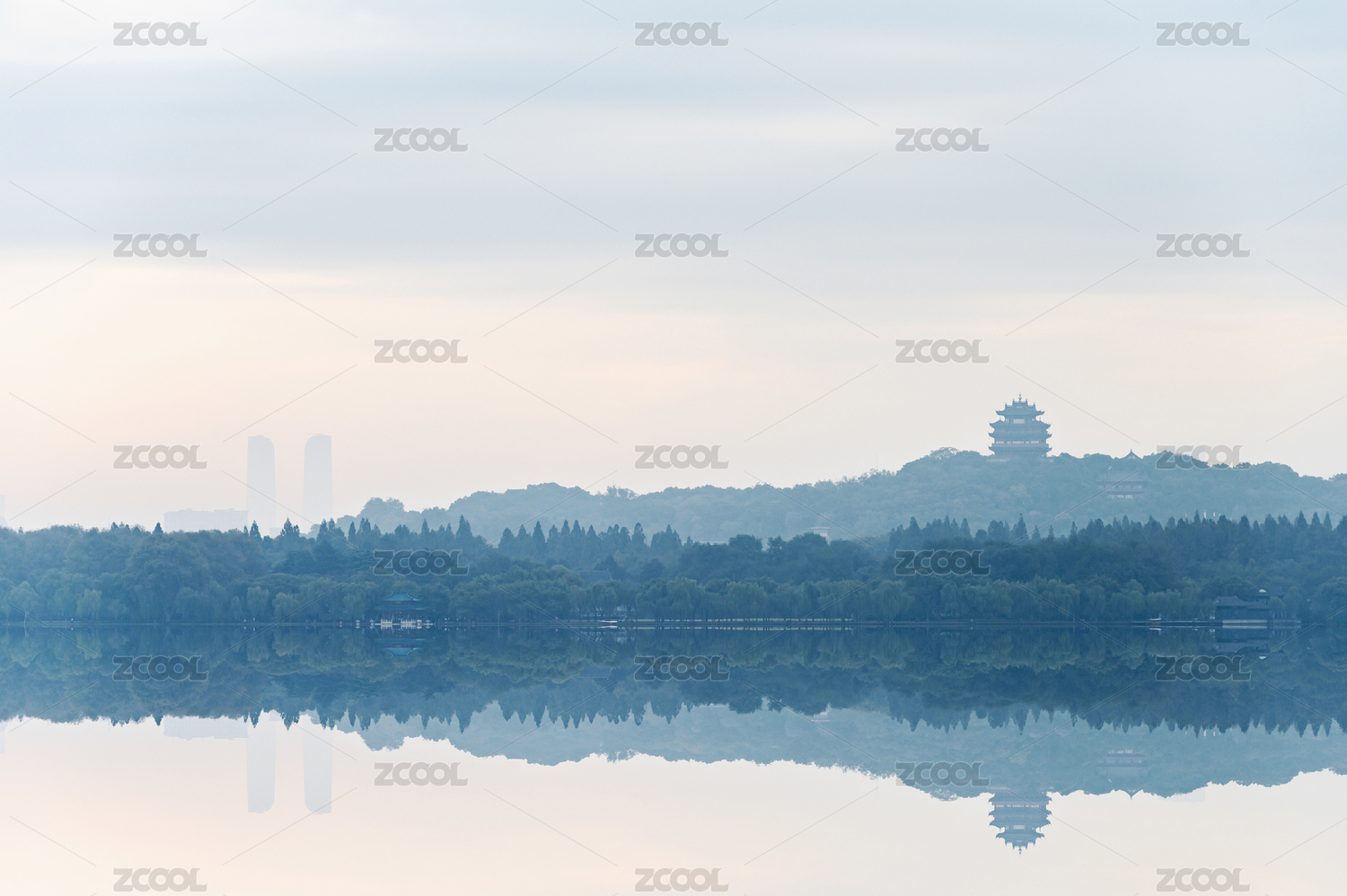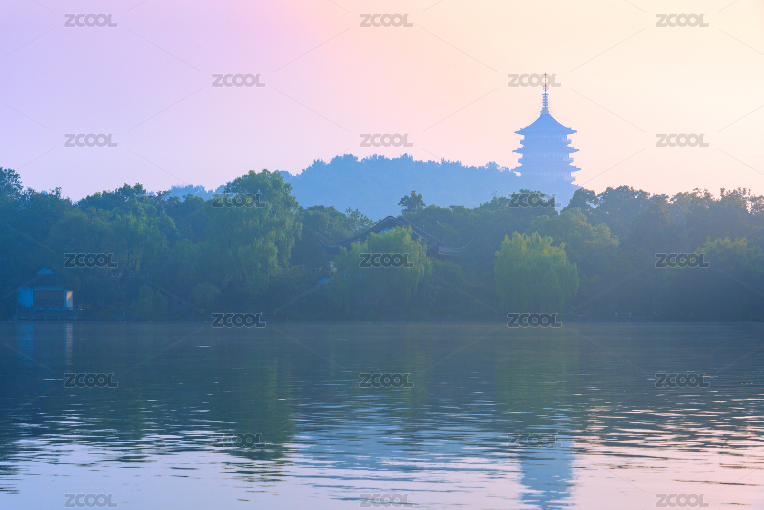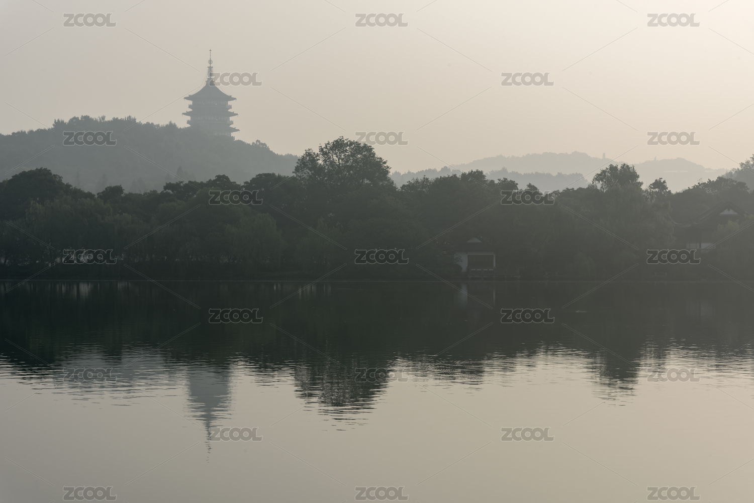 西湖,杭州西湖,雷峰塔,倒影,青色