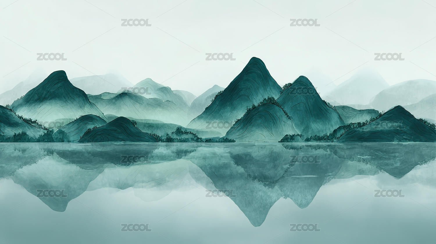 绿色,朦胧,山水画,极简,水墨,意境,风景,场景,中国风,中式