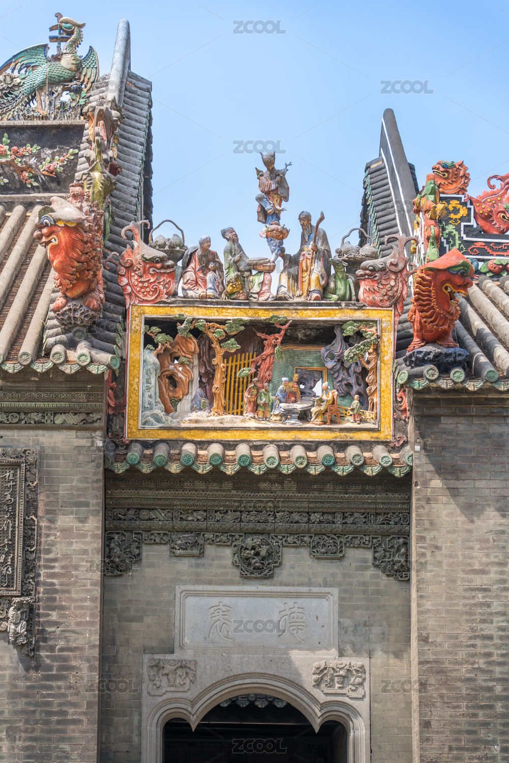 中国广州陈家祠岭南建筑屋顶灰塑陶塑