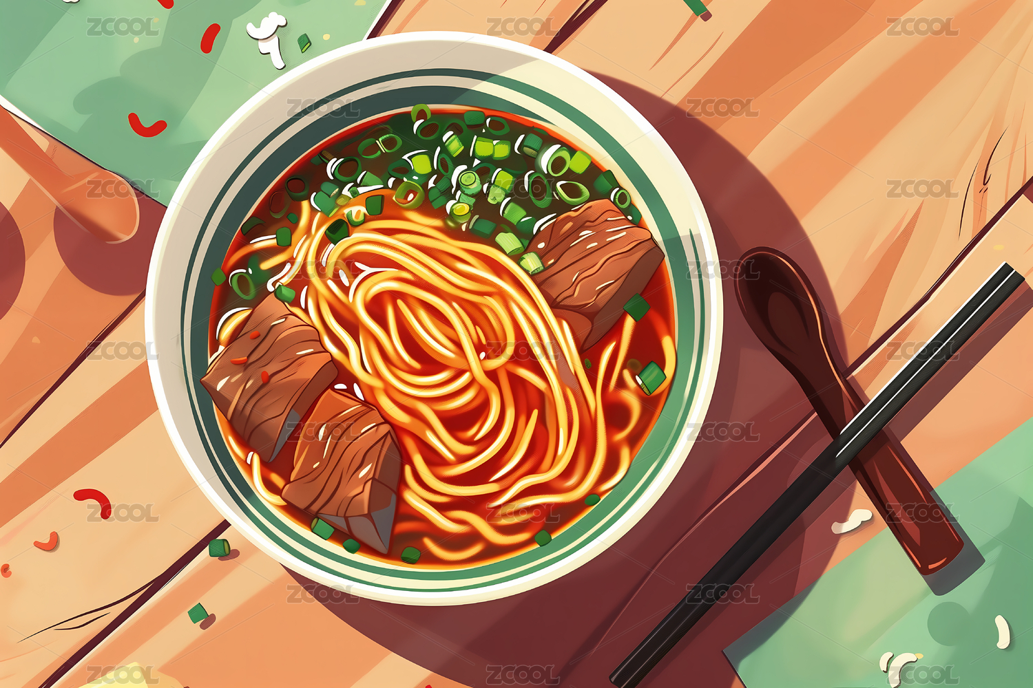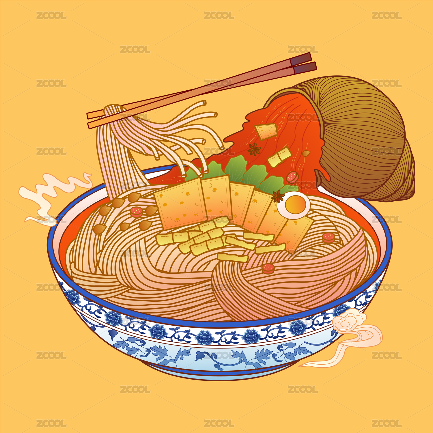 卡通牛肉拉面插画素材