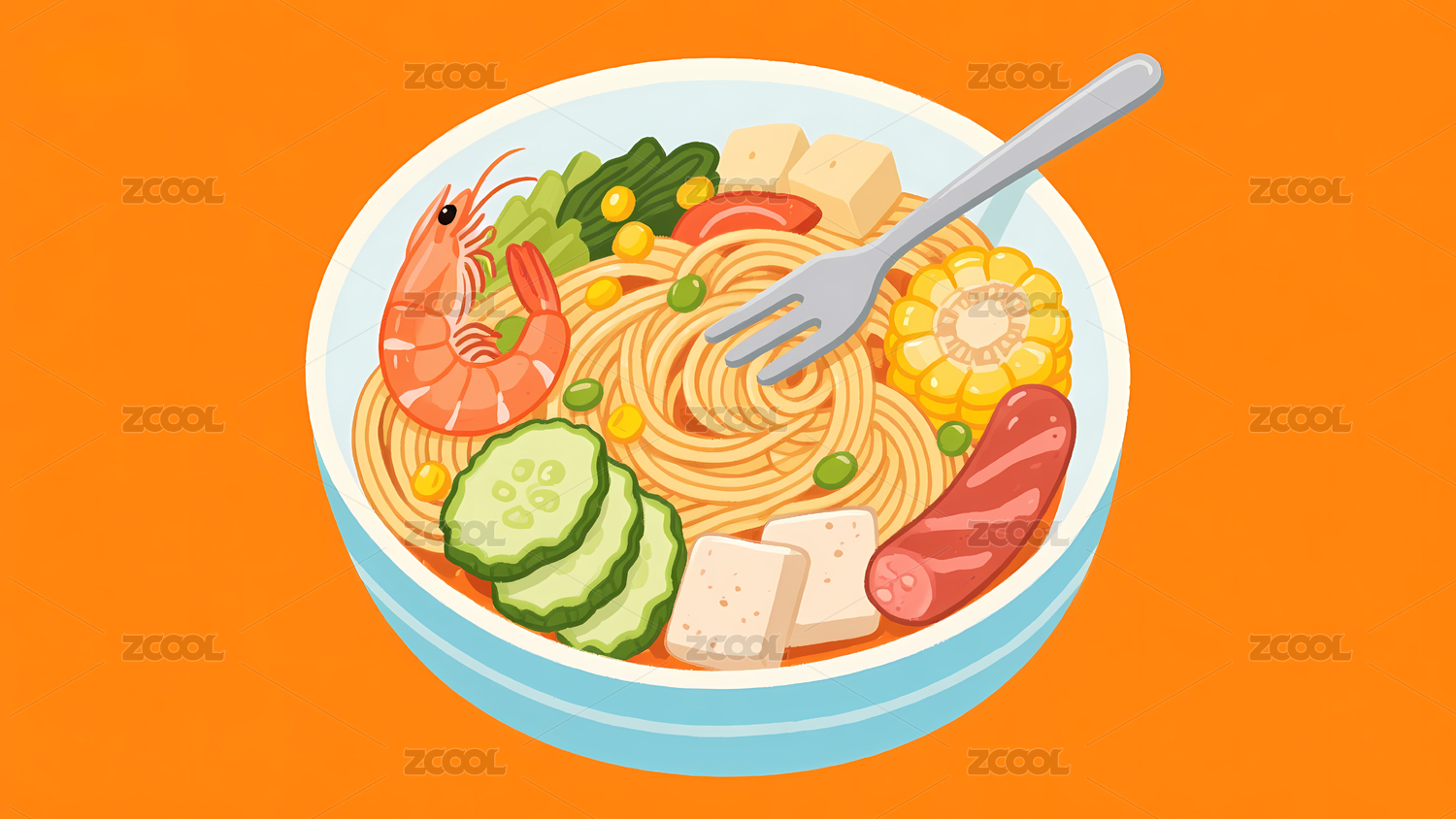 手绘插画面条食物特色美食