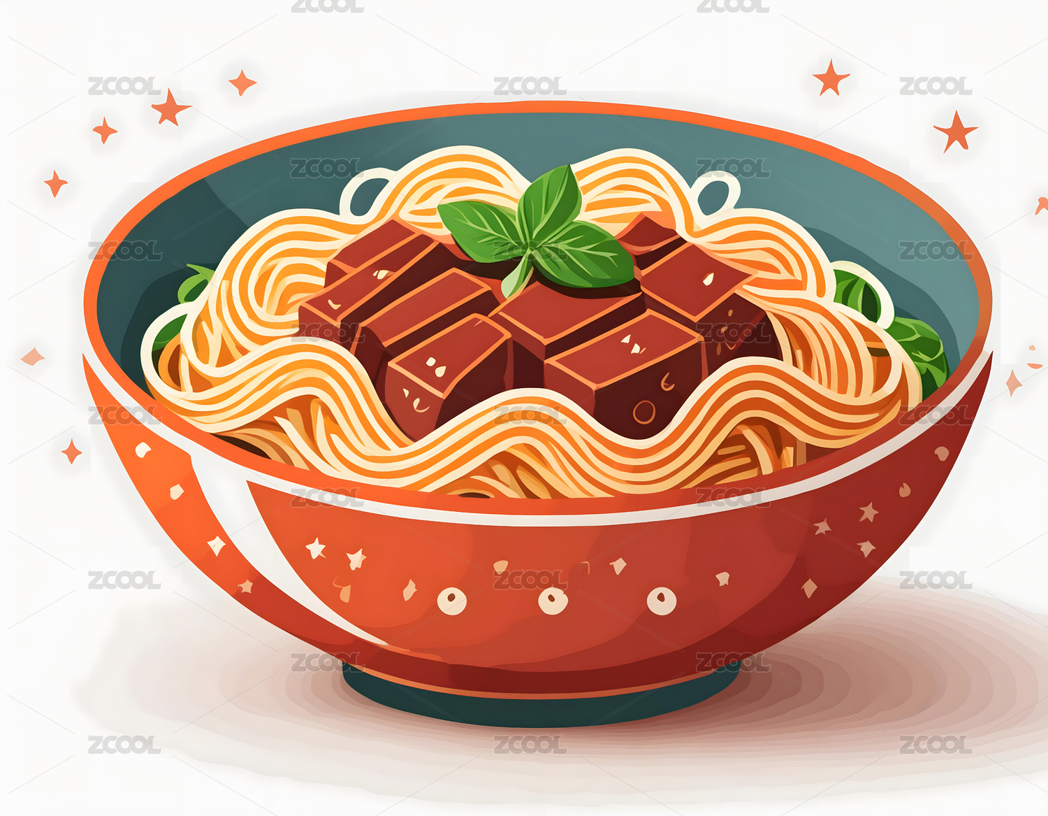 碗中的牛肉面卡通插画