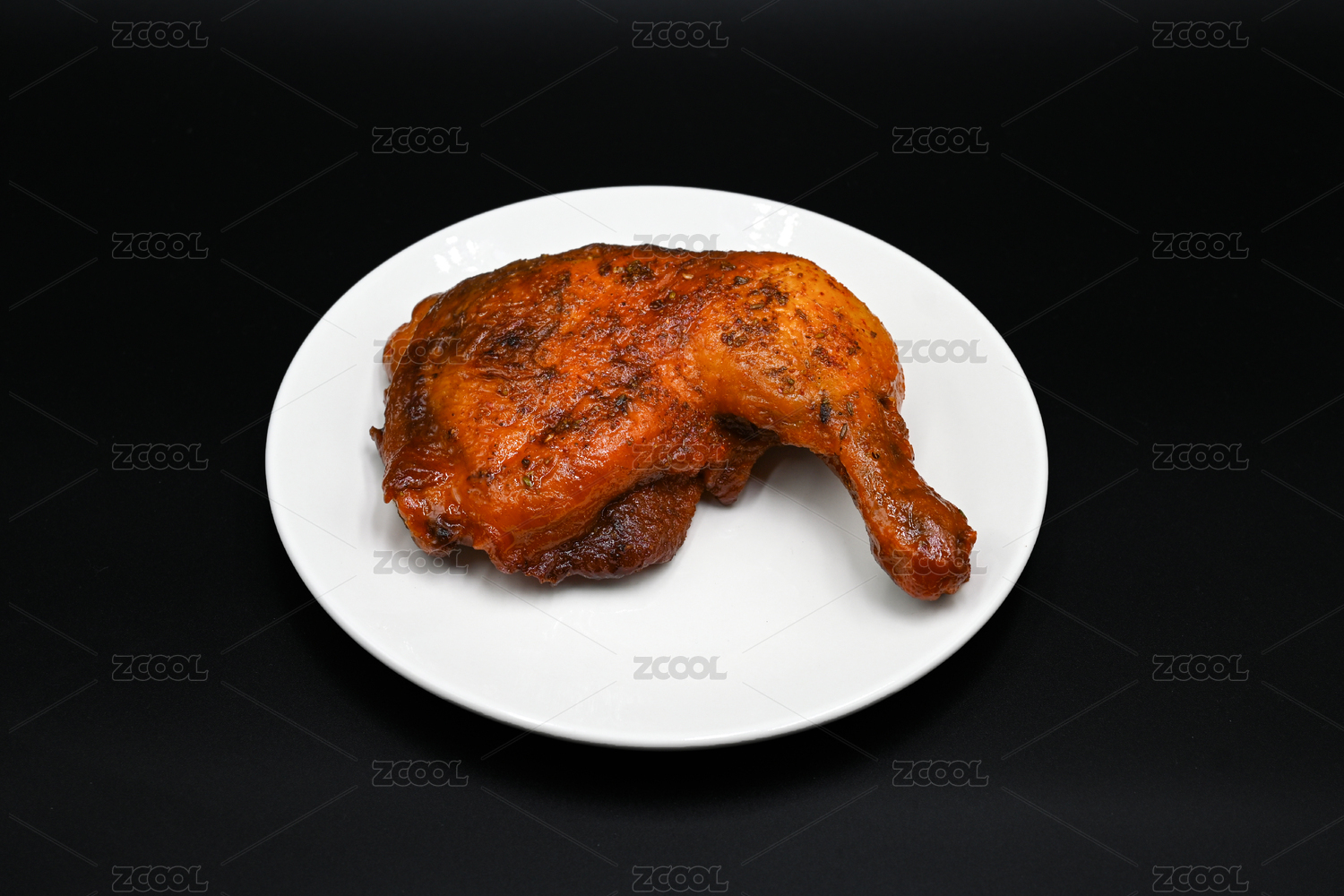 白色盘子里的烤鸡