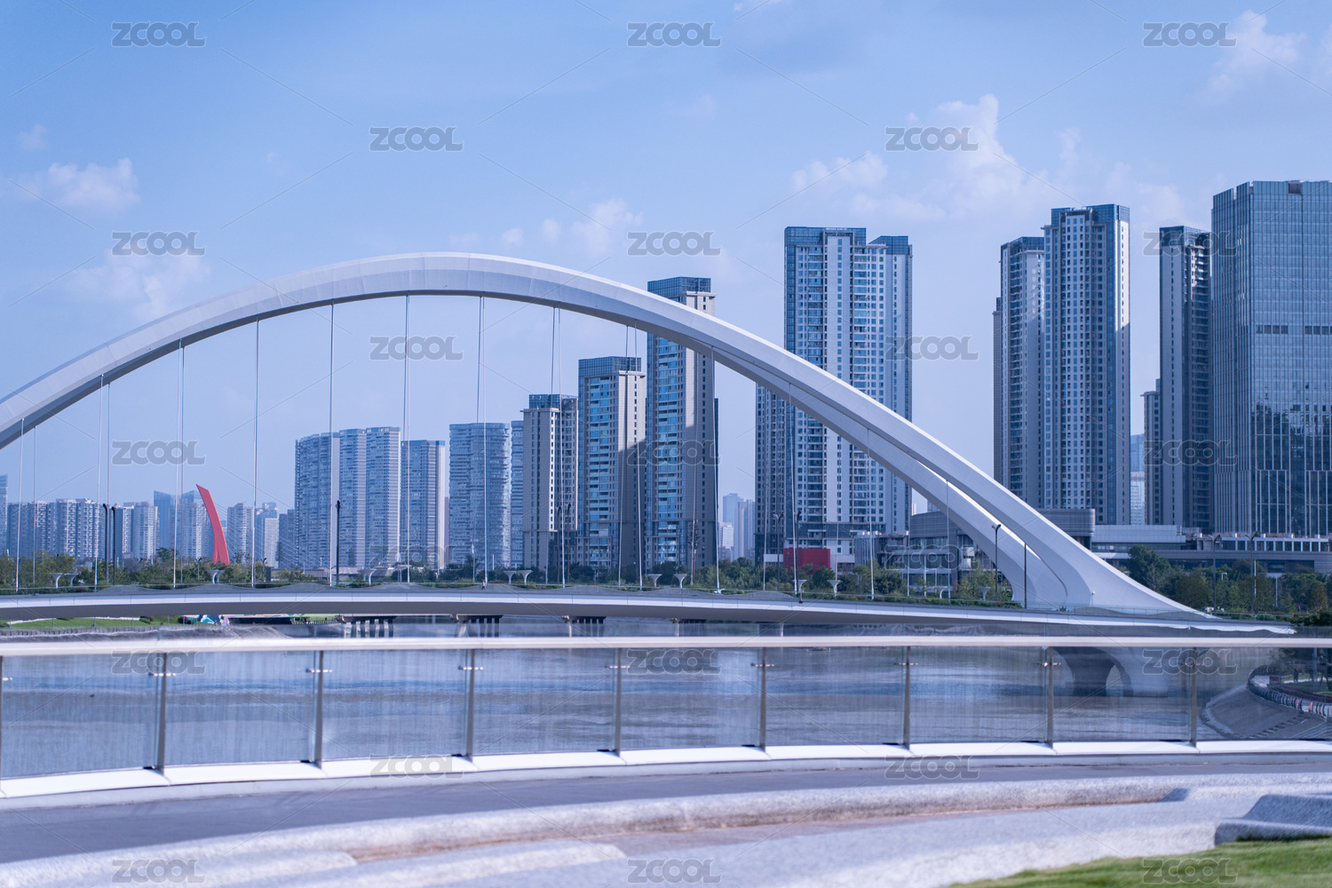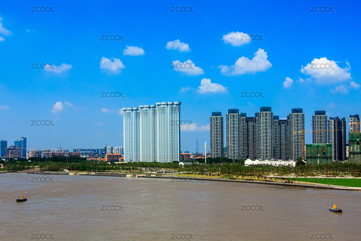 中国浙江上虞曹娥江滨游船码头与高层建筑