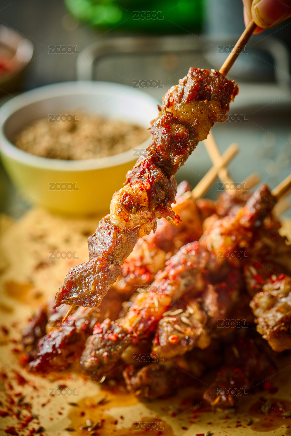 美食,小吃,芝麻,美味,食物,特写,烤串,室内,肉,吃