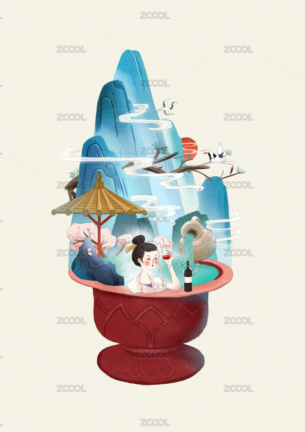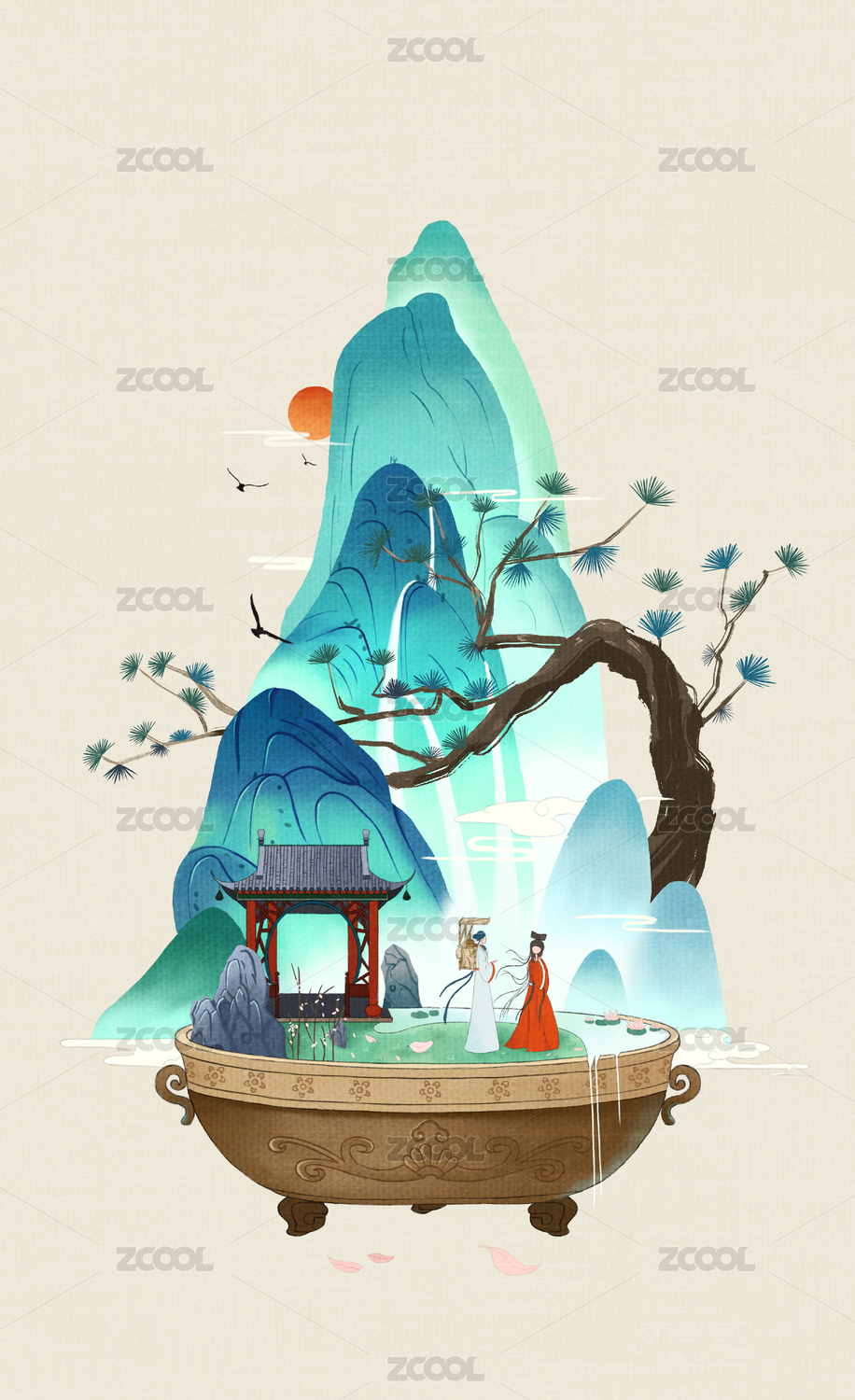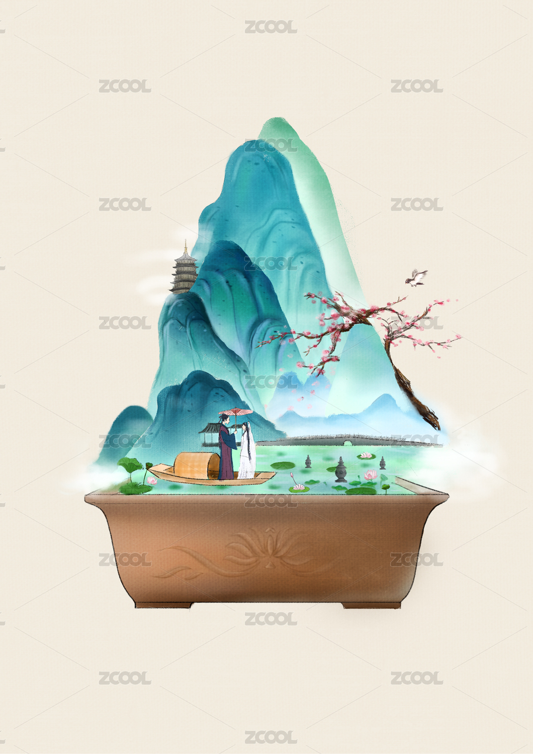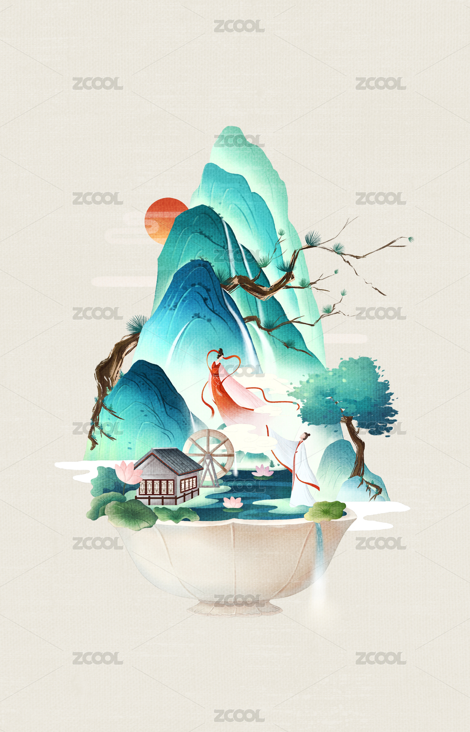 HEYYTGF2020,微观山水,白娘子爱情,荷花,金钵里的爱情,雷峰塔,金山寺,蓝色
