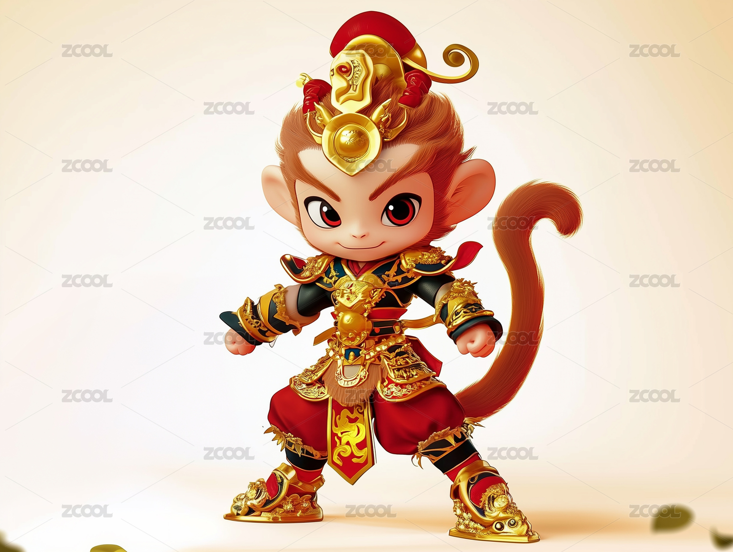 铠甲神猴,红矛待战,Q版孙悟空公仔人偶