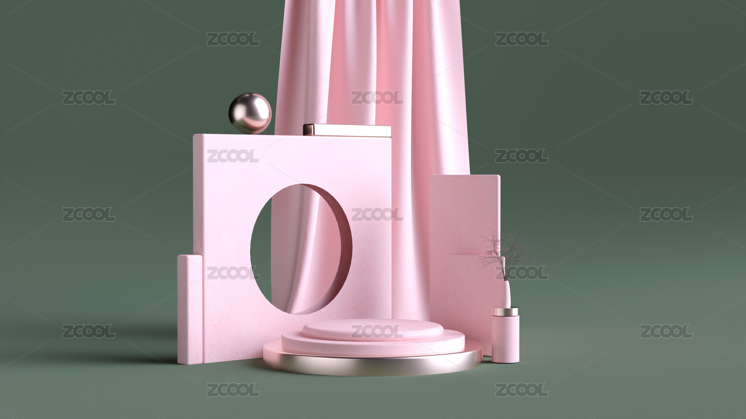 三维粉色高级感抽象产品展示舞台静物装置艺
