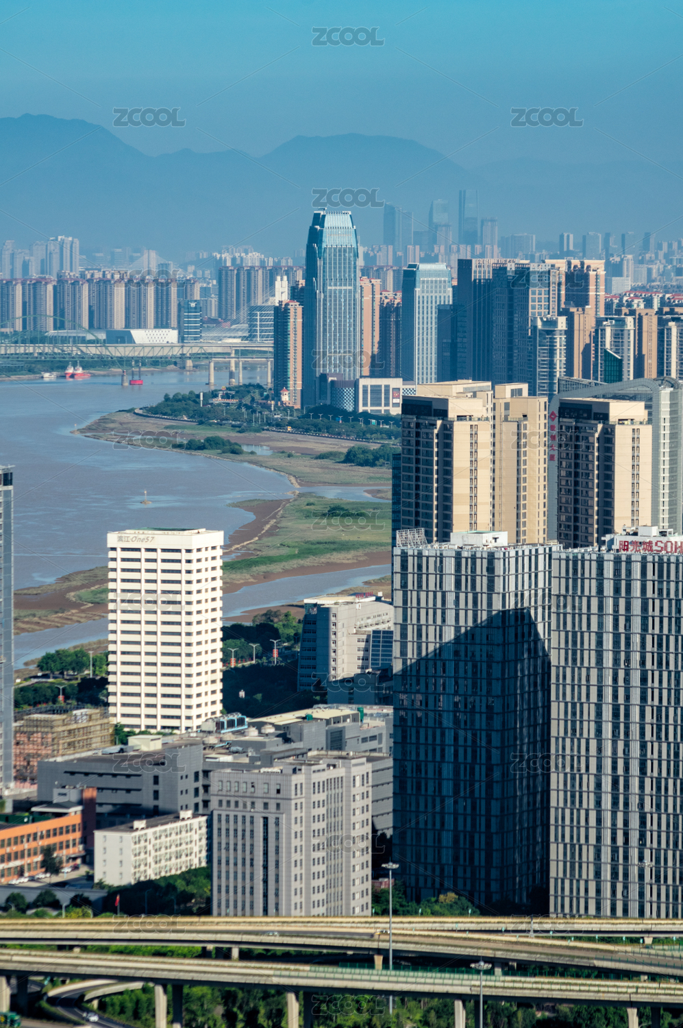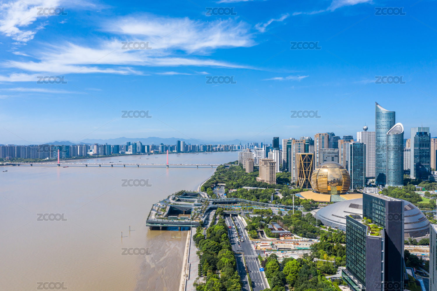 杭州市钱塘江两岸的城市建筑
