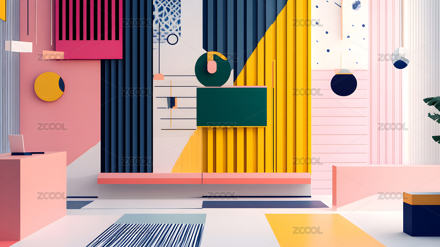 多彩几何图案现代室内设计