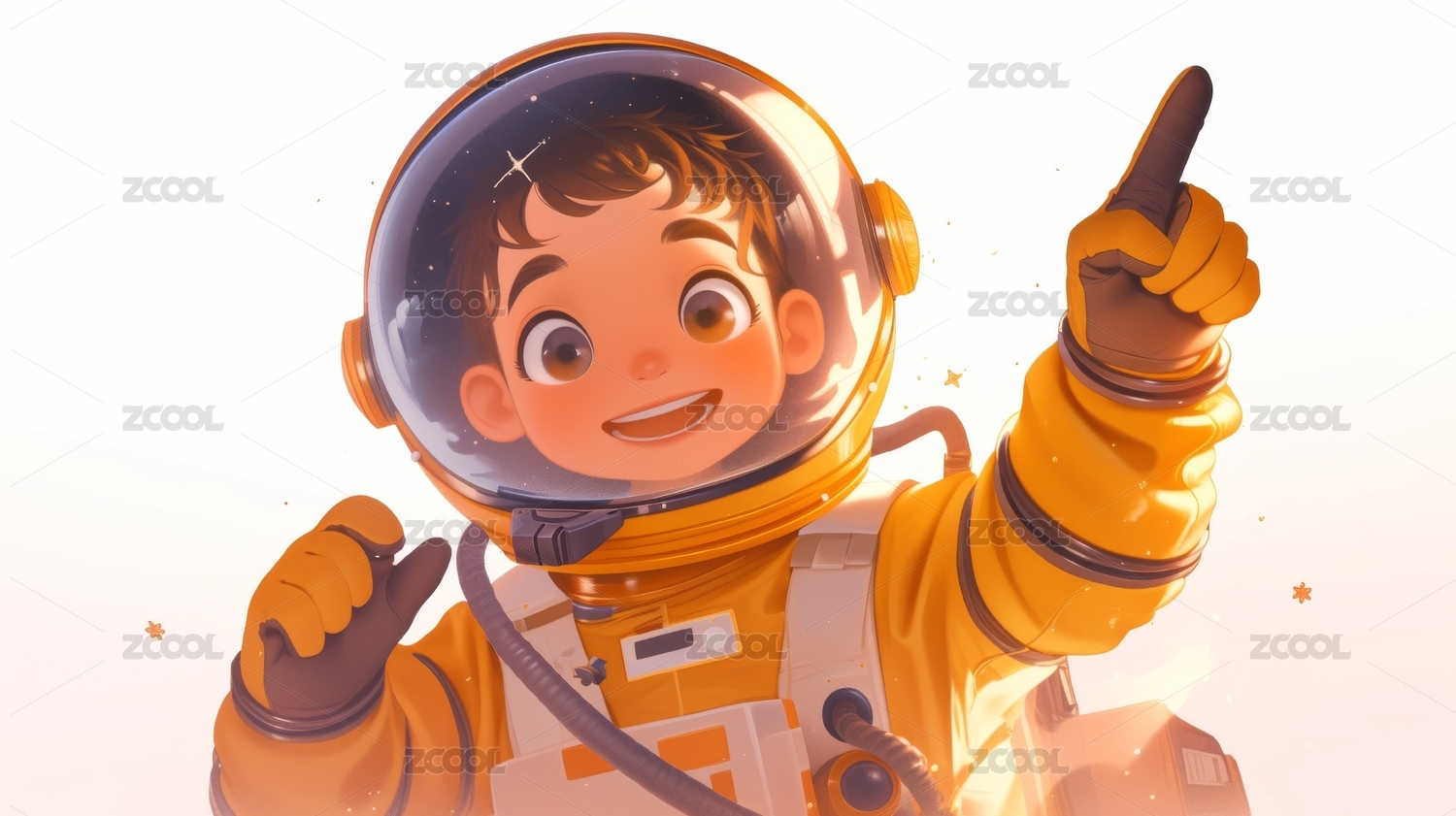 卡通宇航员漂浮在梦幻星空航空插画海报