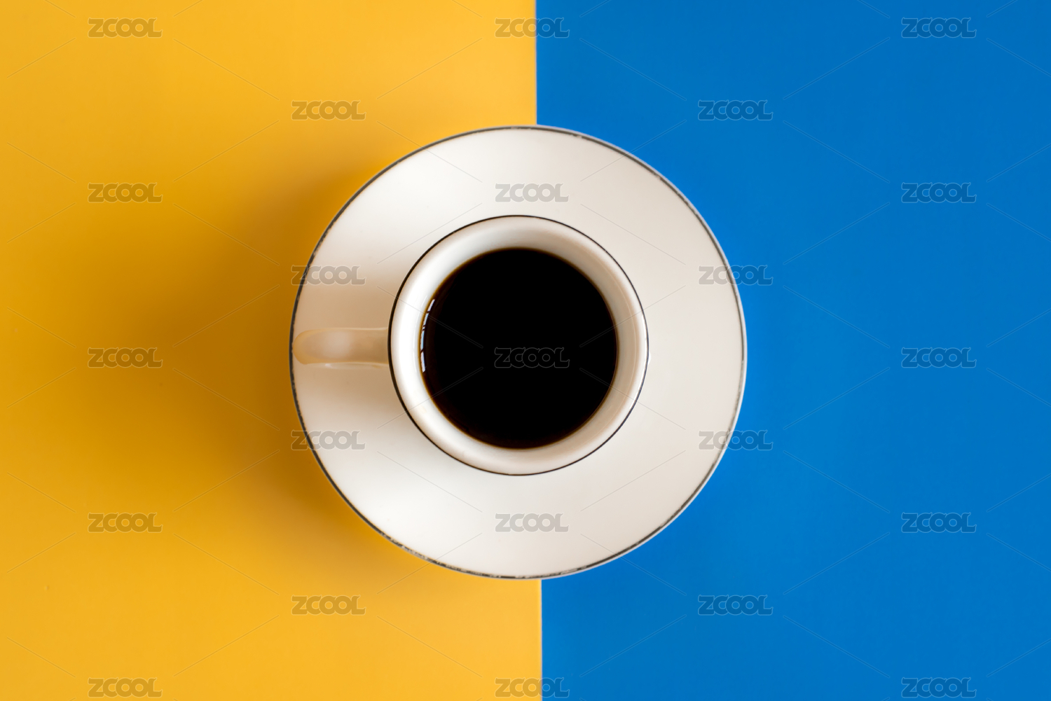 两个色彩缤纷咖啡杯并排放在桌子上图片