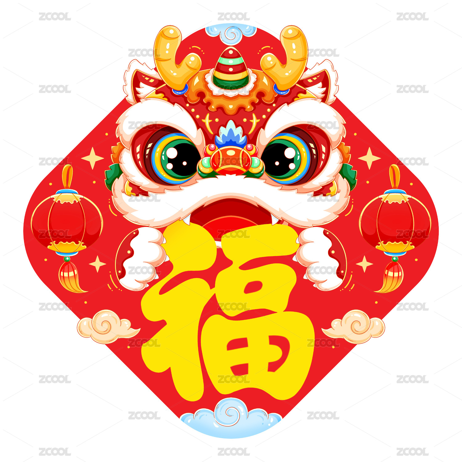 新年灯笼舞狮元素,可以自行加文字和祝福语